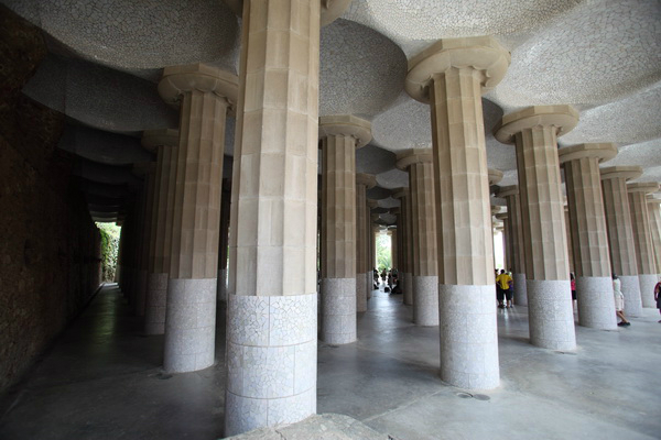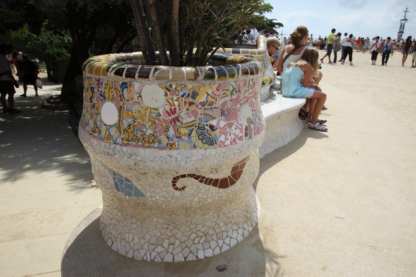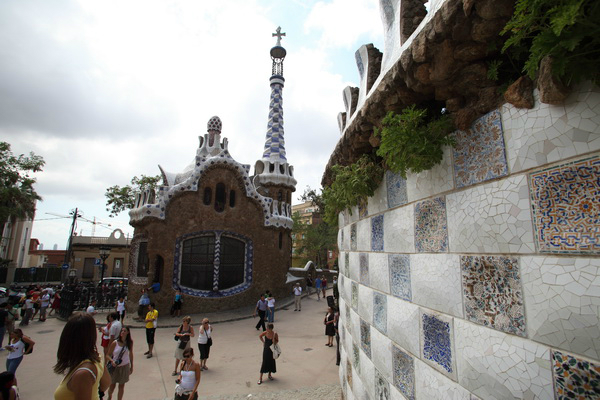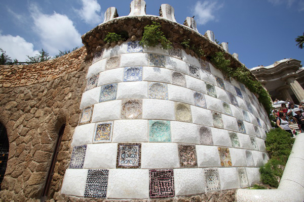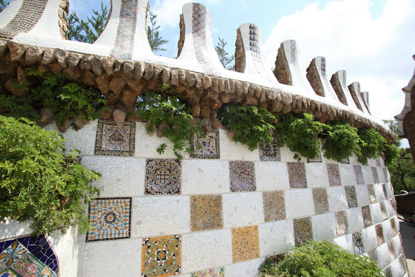喷水池、市场、广场、走廊等,华丽浪漫。高迪在桂尔公园用了许多碎瓷片镶嵌,艺术感强烈。