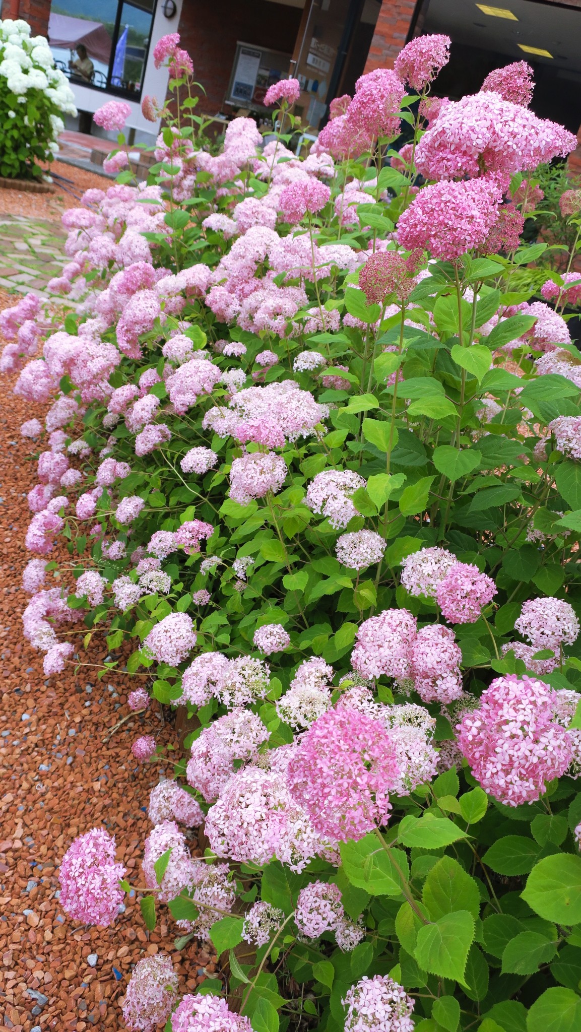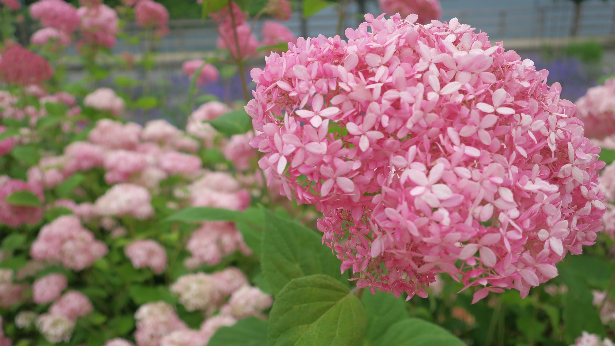 粉色的绣球花很少见,开得正漂亮。