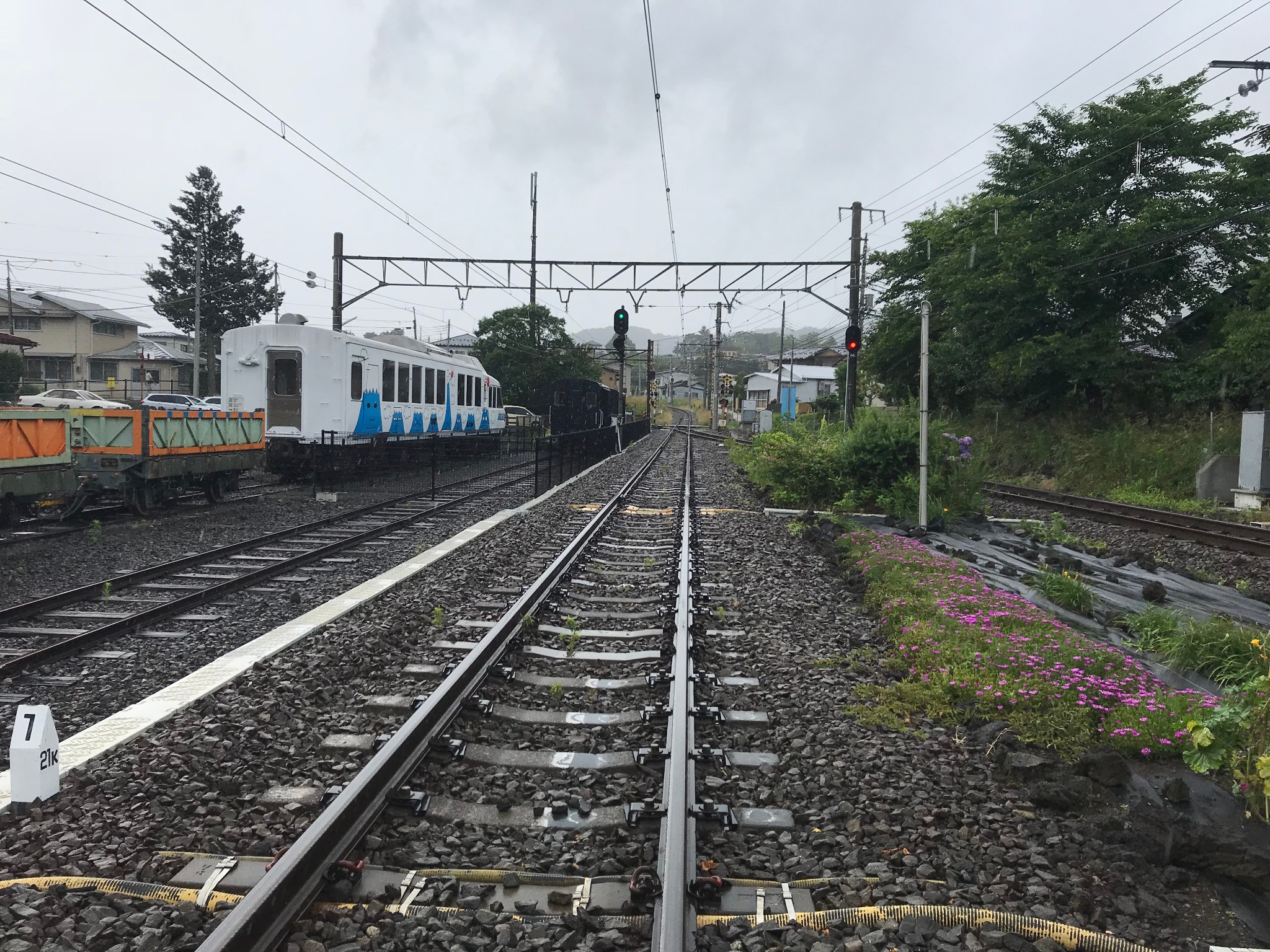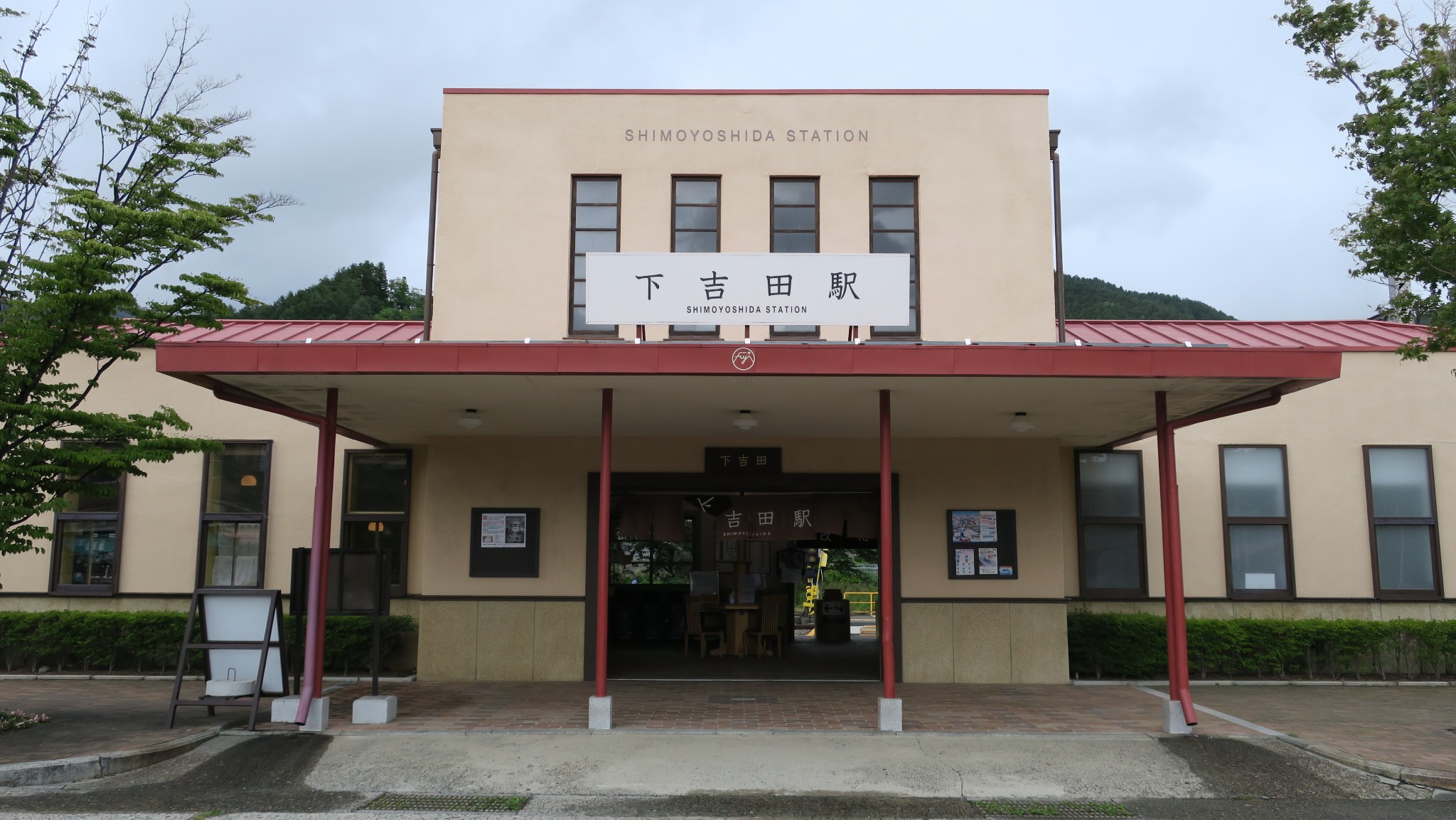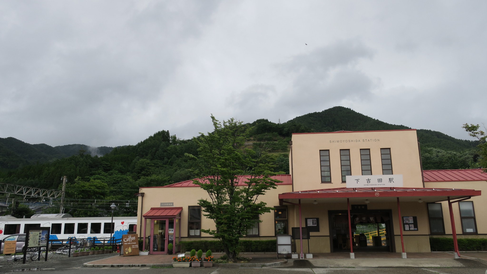 下吉田车站背靠着山,