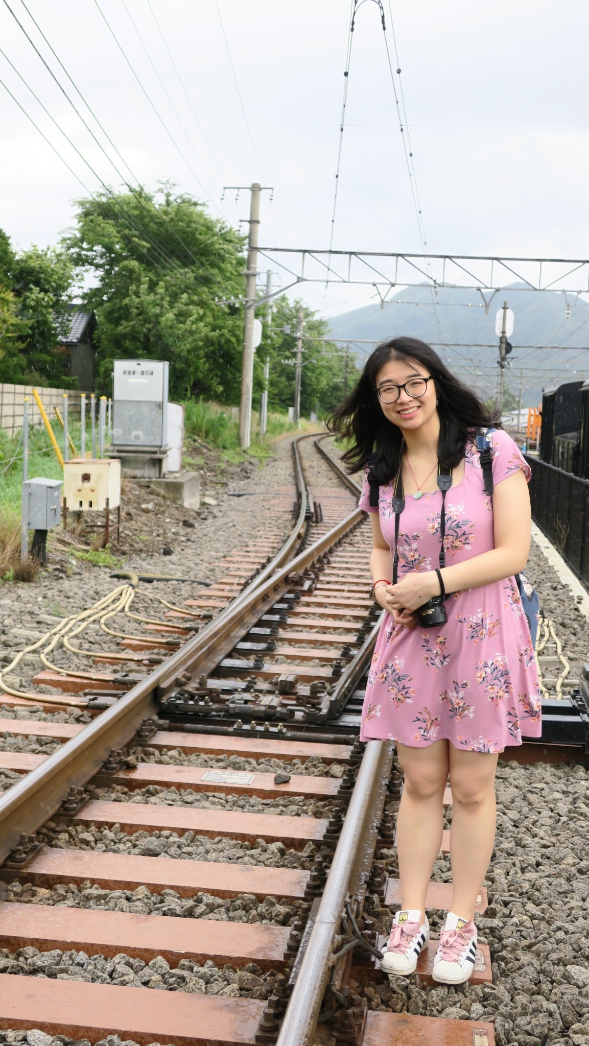 穿过铁路时,小妹也想文艺一把,