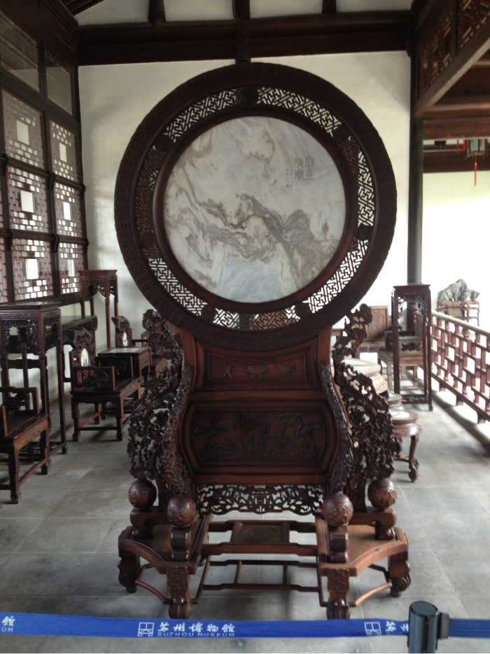 苏州 博物馆是中国 地方历史艺术性博物馆。位于江苏 省苏州 市东北 街。1960年建立,2006年10月建成新馆,设计者为著名的建筑设计大师贝聿铭。馆址为太平天国忠王李秀成王府遗址。面积8000多平方米,分东、西、中3路,中路立体建筑为殿堂型式,梁坊满饰苏式彩绘,入口处侧门,有文征明手植紫藤,内部东侧有太平天国古典舞台等,是全国重点文物保护单位。
