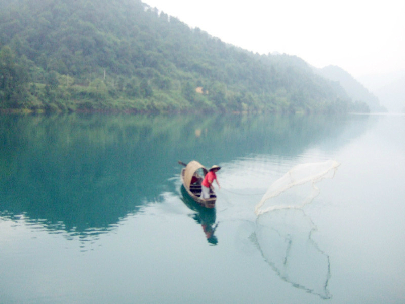 她漂流比较麻烦,要先到东江大坝坐一小时的快艇到黄草镇