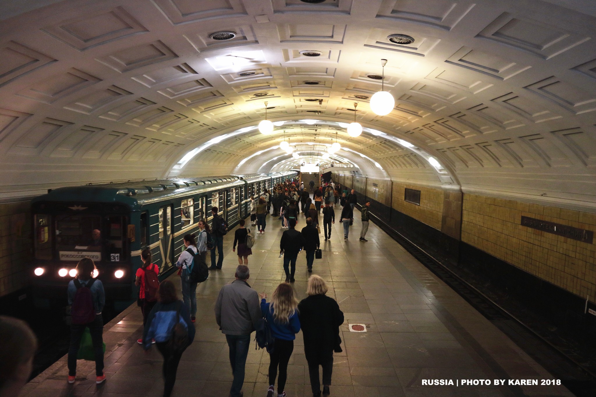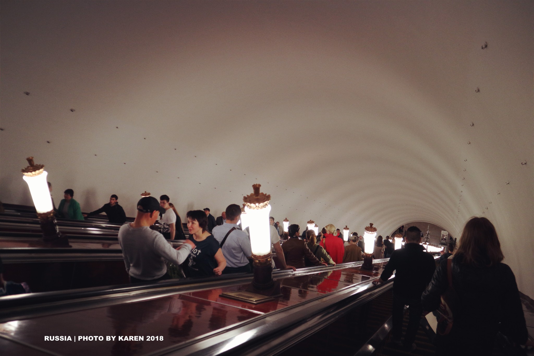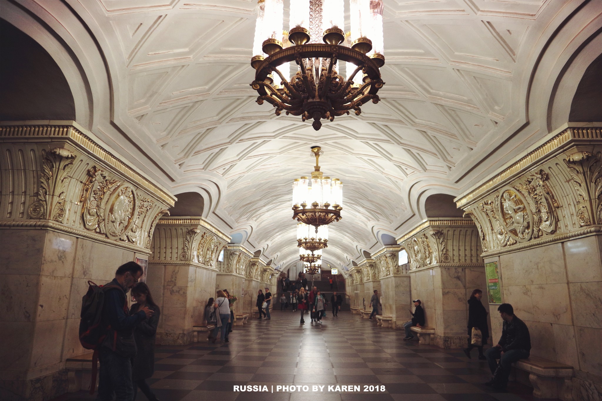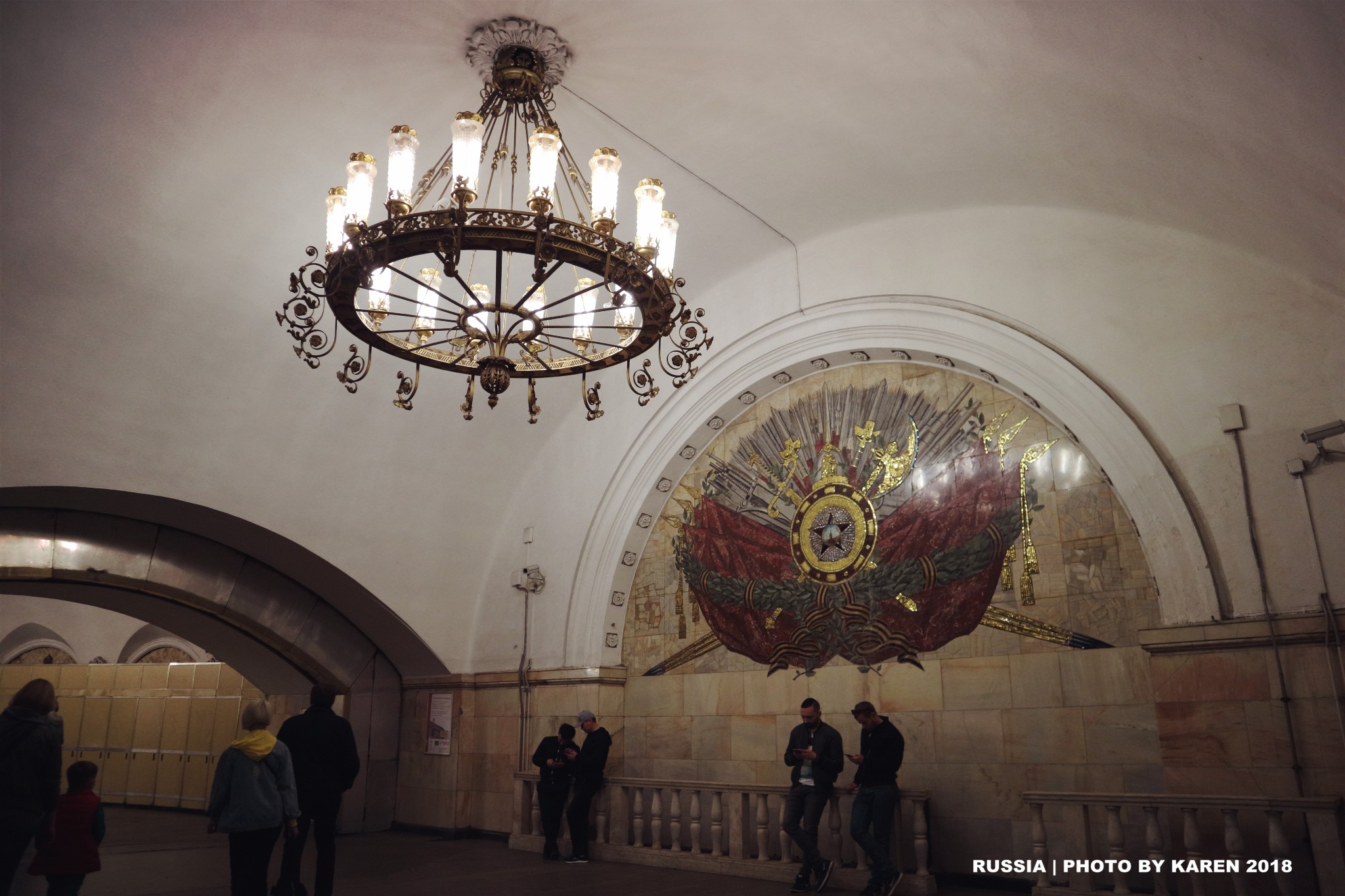 即便早已为见识莫斯科地铁做好充足的心理准备 却没想到 还是被华丽丽的景象震撼到 一趟趟列车进出站 像是一条时空隧道 瞬间穿越到上世纪的苏联 年代感即刻扑面而来 无法阻挡