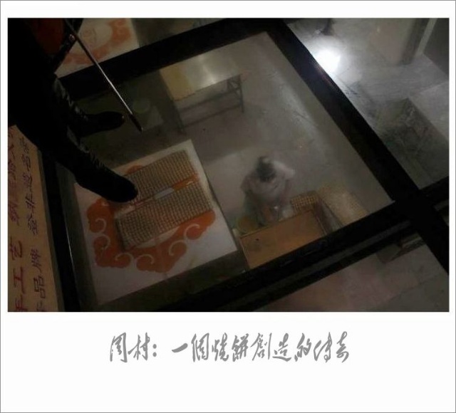 也是烧饼博物馆,透过钢化玻璃地板,展示下面工作间的烧饼师傅工作现场。