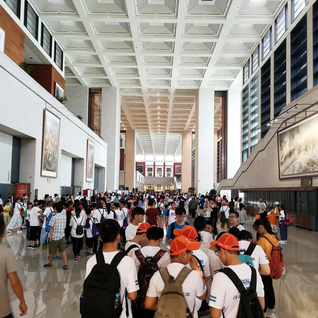 无惧高温,国博里万人空巷,很多参加夏令营的学生。