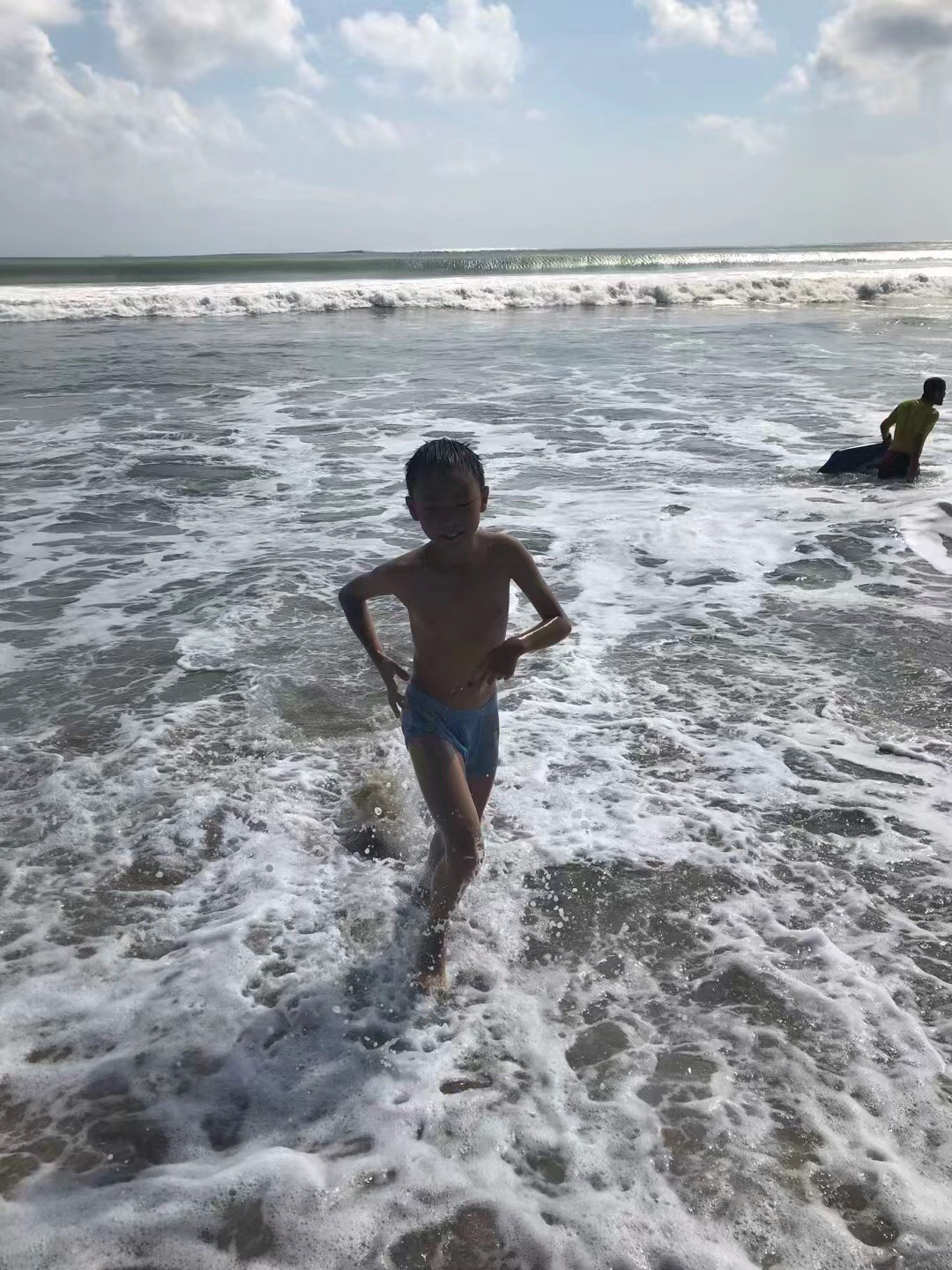 第五天,第六天自由行,本来预定第五天去蓝梦岛,因为浪大,官方禁止出海,就非常遗憾的没有去,早上在酒店对面的南湾沙滩玩玩,下午自己包车去的库塔海滩,完了在去家乐福,最后回酒店!我们住的地方几乎是巴厘岛最南边,就在南湾水上乐园旁,这里说下,南湾沙滩确实是我见过巴厘岛最差的沙滩和海水,因为这里是水上乐园、所以浪很小,关键是沙滩上海草太多、垃圾也多,太不干净,也没有什么沙滩,只是一小截,完全没有兴趣,但也没有办法,总比没有好,只有将就玩玩!所以,建议各位朋友不要住南边,离市中心好远的不说,来回堵车、绝对堵到你怀疑人生!真的,巴厘岛的道路狭窄,摩托车️太多,车速很快,哎,不说了,说起都伤心,有一次白天和团队玩后送酒店,堵了两小时,在加上路程远,回到酒店很晚了,附近餐馆也少,只能吃泡面!酒店本身还是不错的,挺漂亮,就是交通堪忧啊!下午在T宝上租的六小时英文司机,158元,说实话,很划算!1点接,7点回来,之间去哪里你说了算,超时是5美金一小时,不贵,我们自己玩了一下午,最后给了5万小费。特别说一下,库塔海滩全是洋人,海浪超大,很好玩,小朋友玩的不想走!家乐福里很大,东西也不贵,卖小礼品的很多,可以去逛逛!