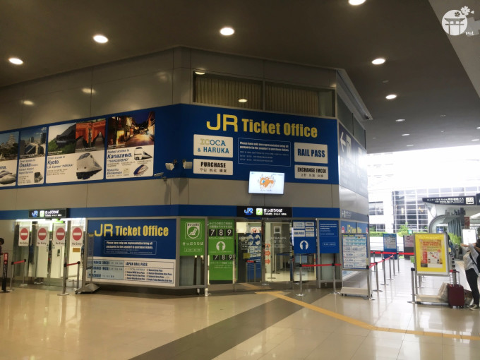 因为此次行程安排的第一站是京都,所以提早在官网上预定了ICOCA&HARUKA套票。出关后,在2F左手边穿过类似于天桥的过道,远远就能看到蓝底黄字的“JR Ticket Office”的牌子,准备好预约确认信和护照,支付现金购买。预定的时候特意选了HelloKitty的卡背图案,超漂亮。