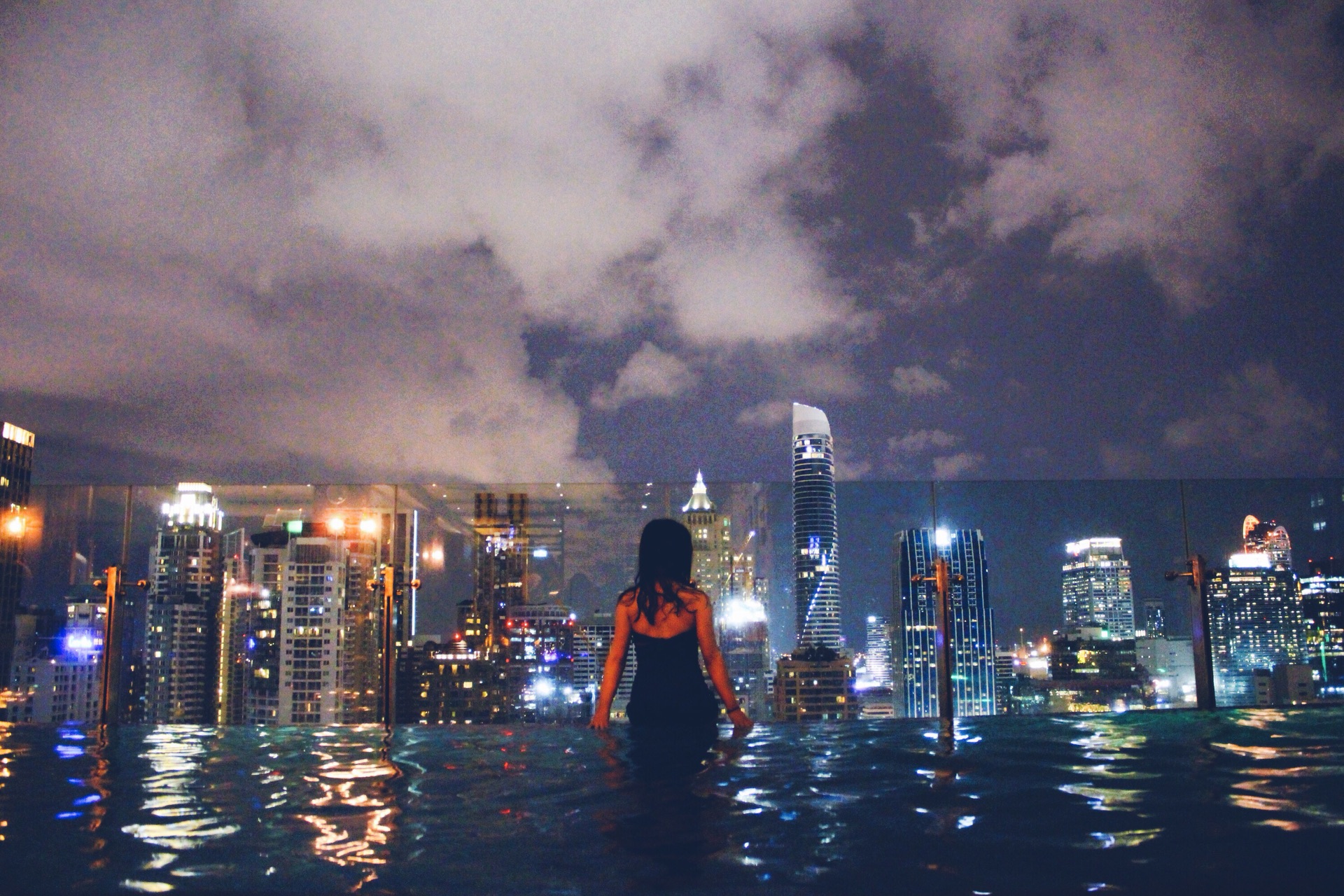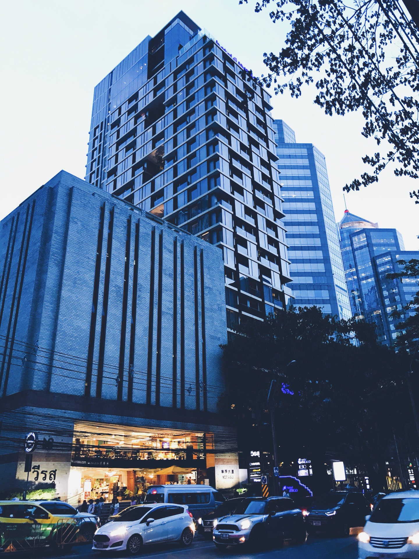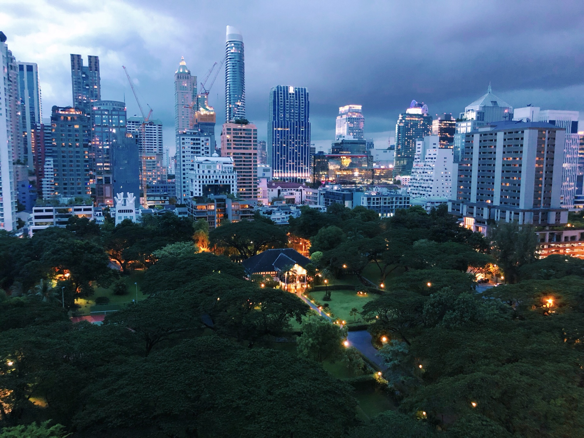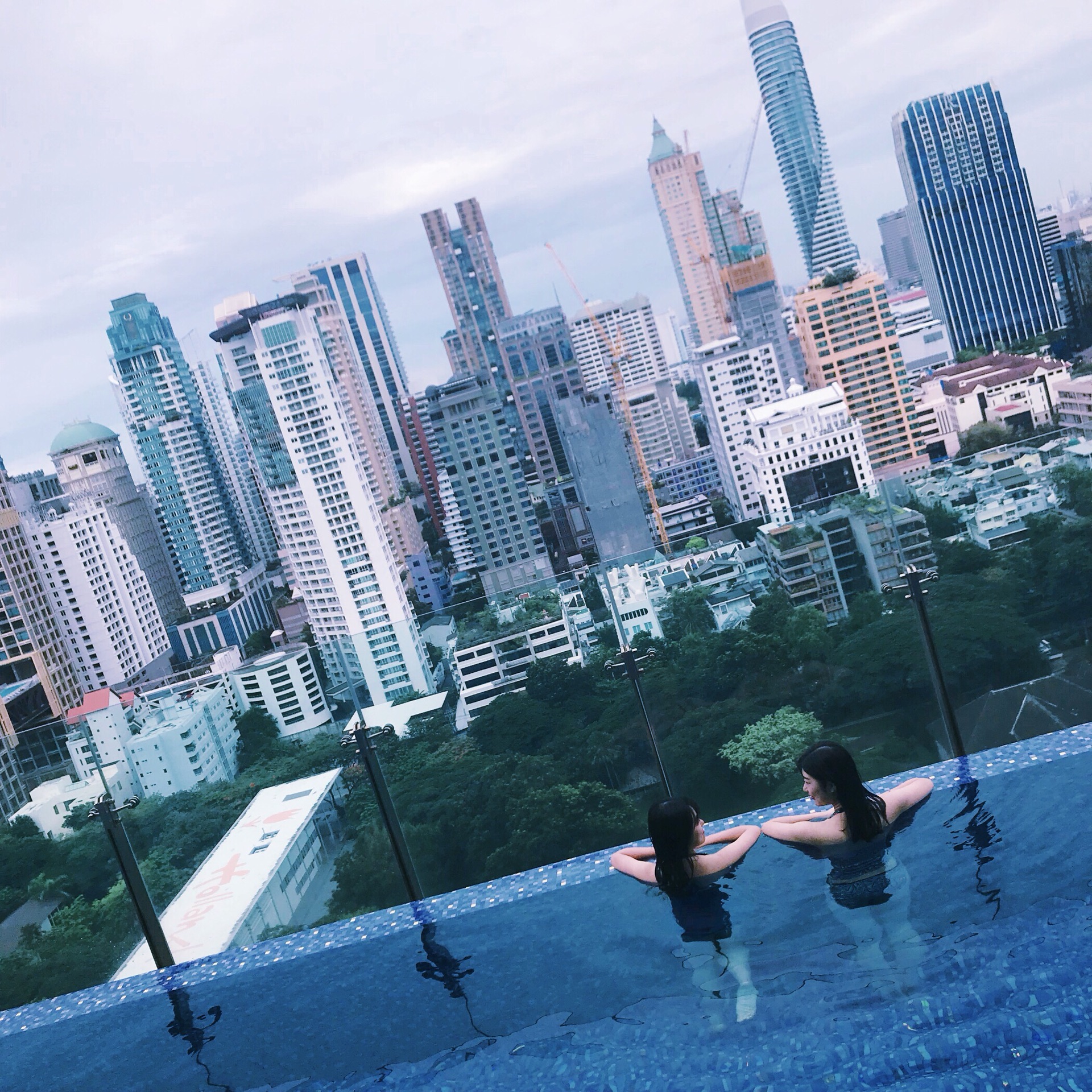 下了飞机过了关找到了之前订好的接送机,一切都很顺利地到了英迪格酒店,酒店就在曼谷的市中心,美国大使馆对面。我们的房间正好可以看到美国大使馆全貌(下图中一片森林中的一个小房就是美国大使馆)酒店风格其实还挺中式复古加美式工业的感觉,风格比较复杂,可以看图。价位大概1000rmb一晚,个人觉得有点小贵,不过可以接受,住着也很舒服。最最重要的是楼上有个无边泳池,饱览城市风光,闹市中的一汪泳池水。
