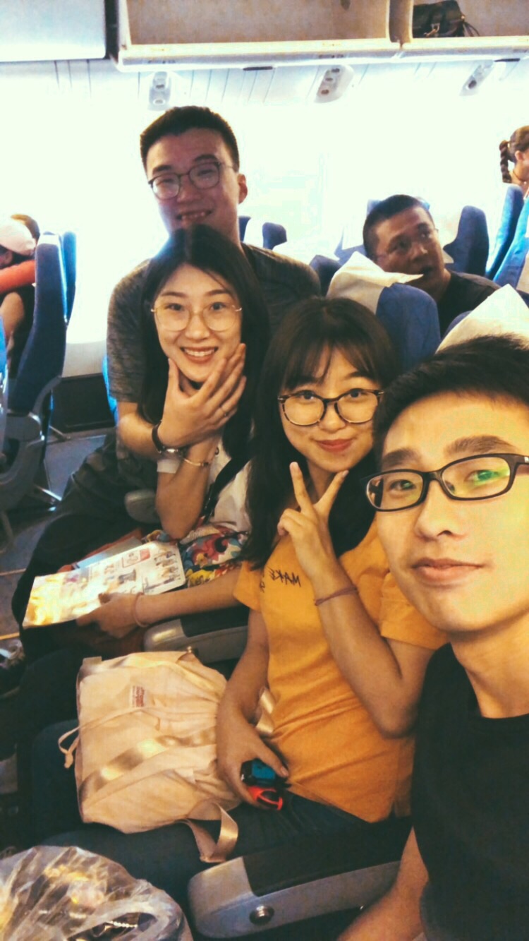 酷鸟大飞机,我们坐在中间一排,这样的“正好”也很令人兴奋。我自来都特别怕坐飞机,结果艳鑫比我还要害怕,我一下就强大了,还能安慰她呢。