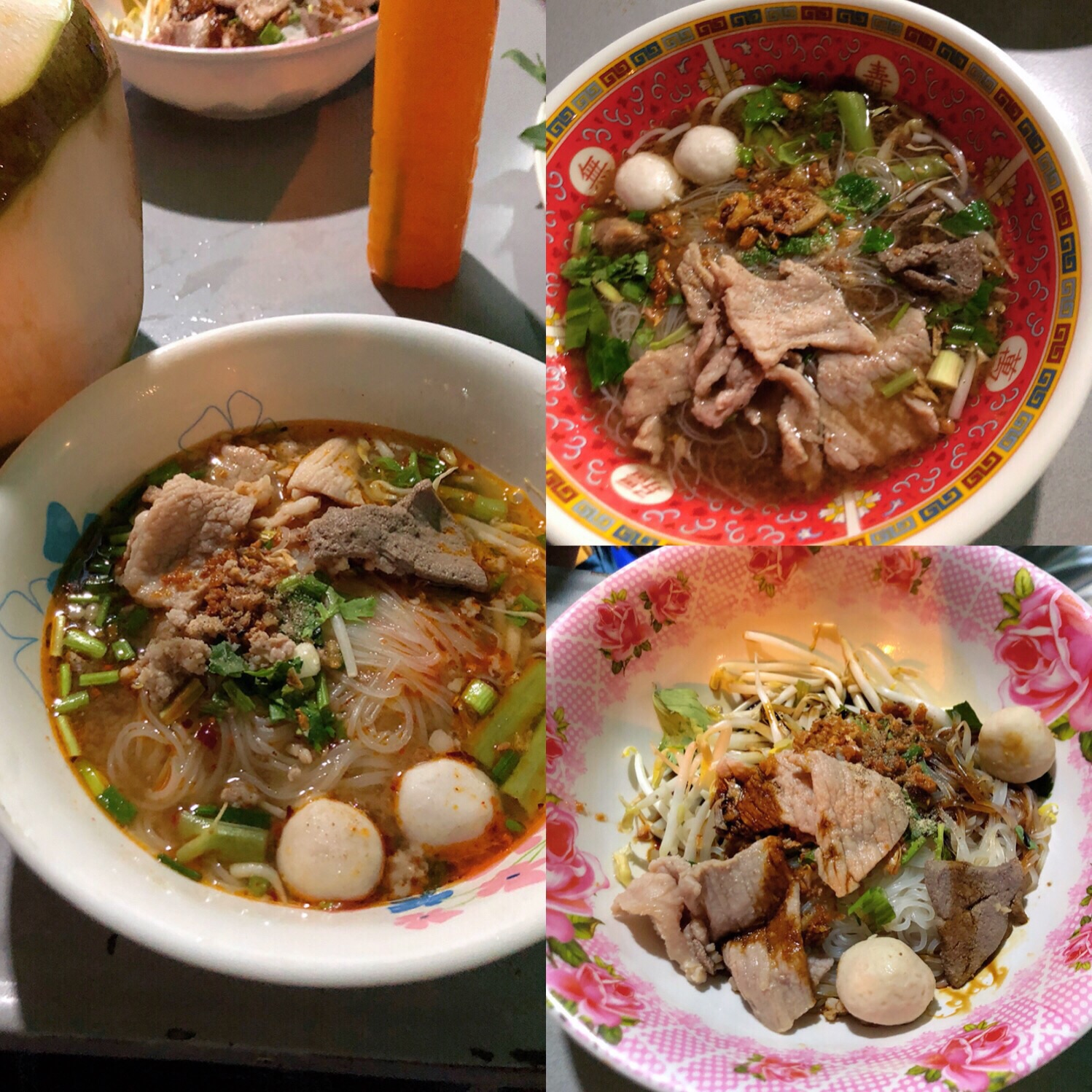 晚饭还没吃,我们就打车去帕篷夜市,晚上司机不给打表,要200泰铢,距离很短。我们来回找了好几条街,看到的就是酒吧,感觉是个红灯区,可能我们没找对位置,累了,就随便找了一个小摊吃面。结果大为惊艳,之后的几天艳鑫都特别想念这家小面。