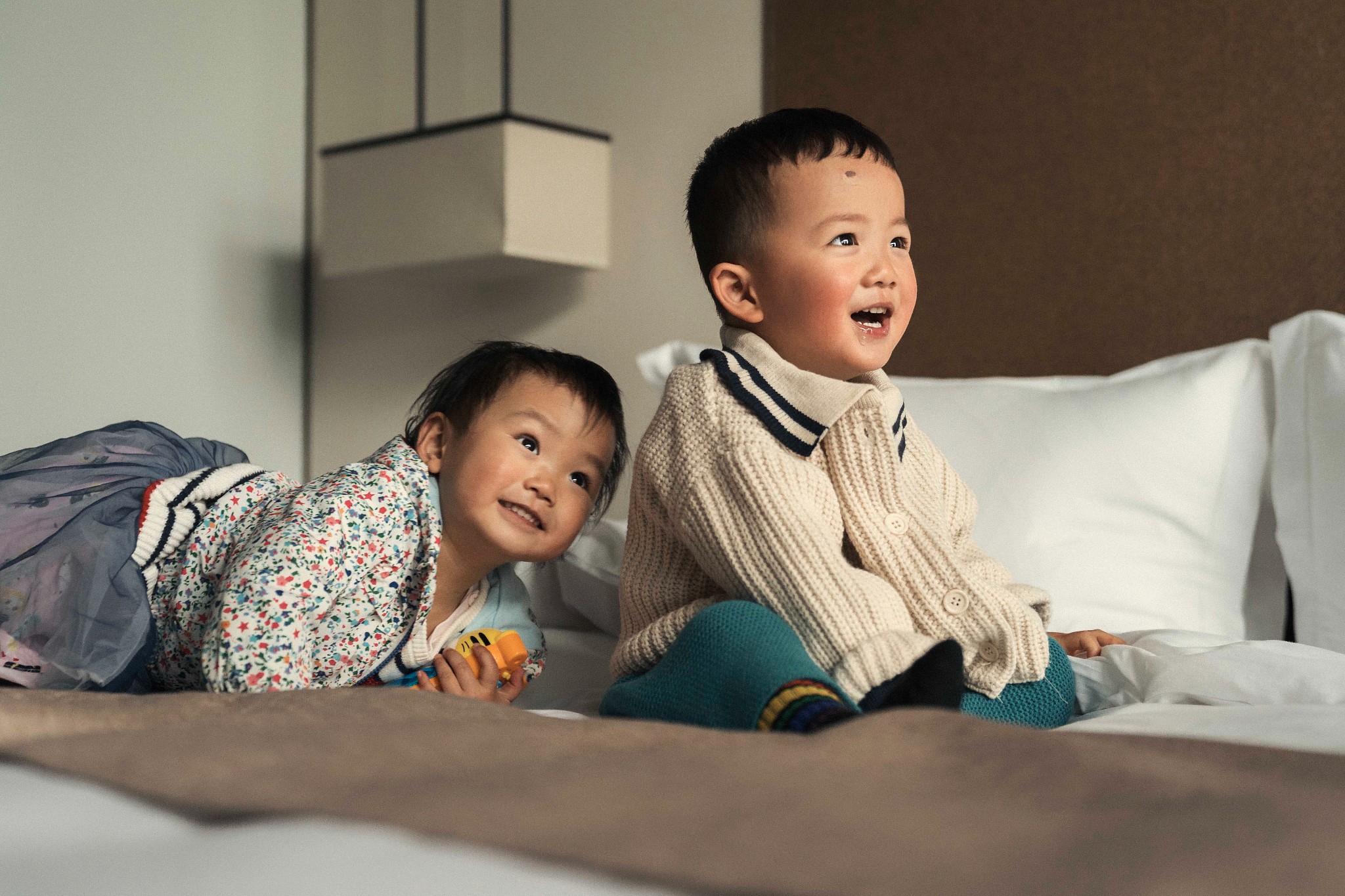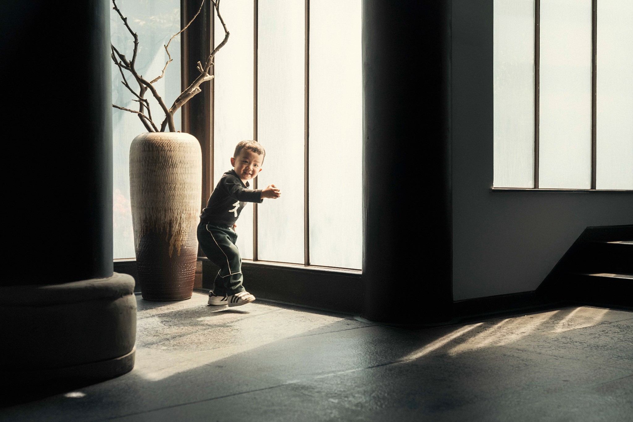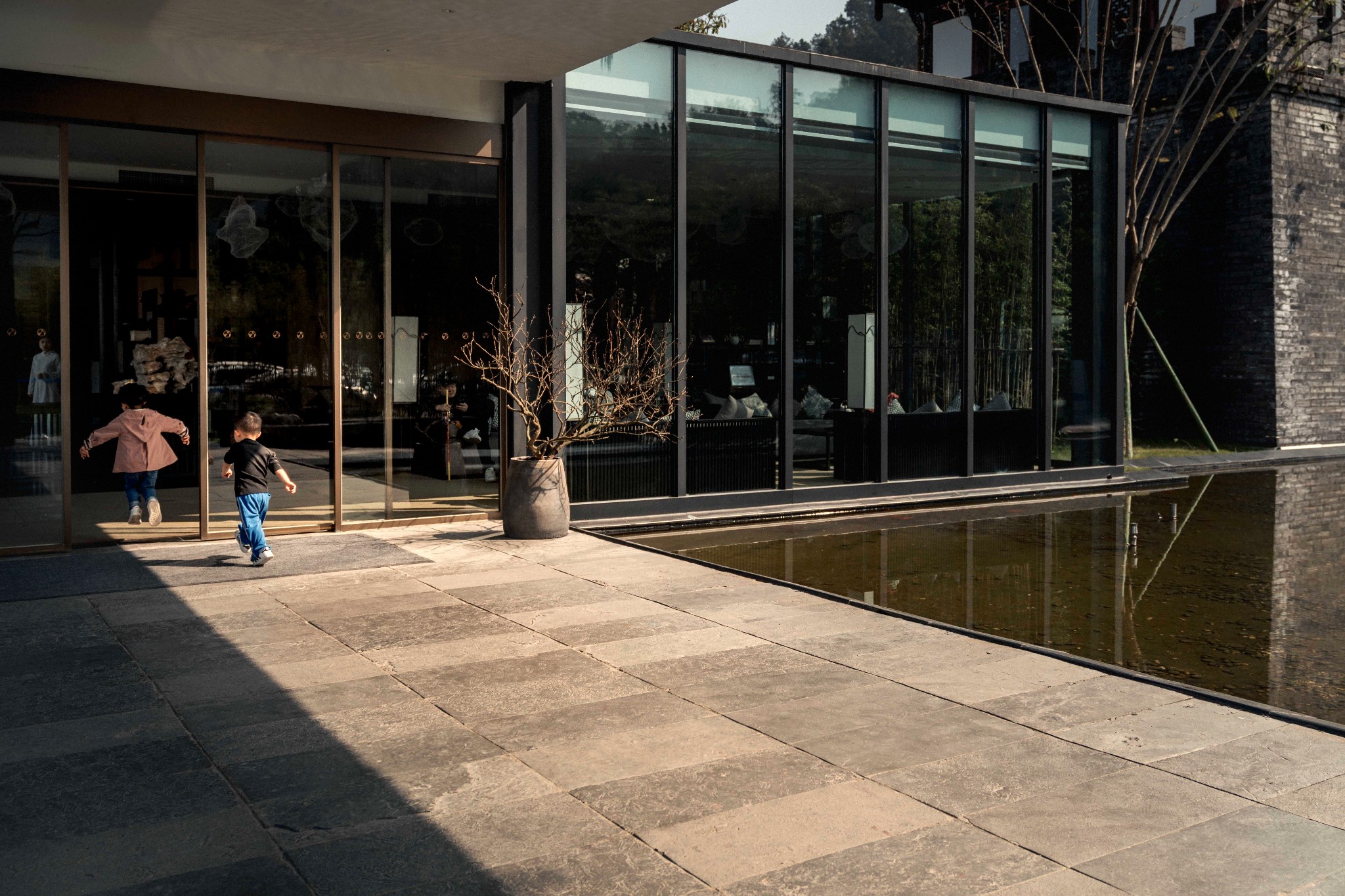 别看如此佛系且静谧的酒店,分分钟也能成为小朋友游玩的乐园。还没进大厅,小朋友已经展开了你追我逐。
