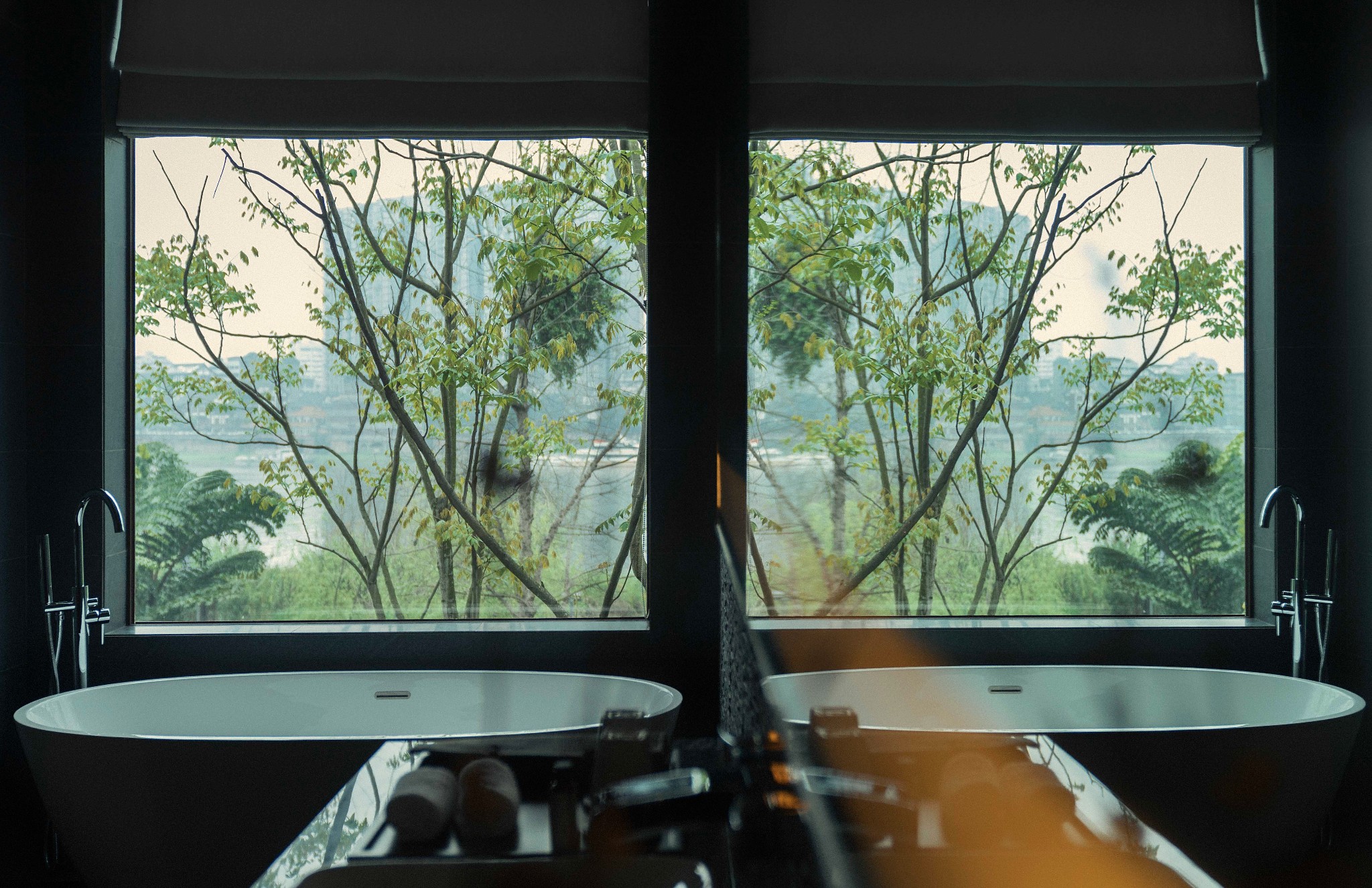 本次入住的是坐拥无敌江景的房间,白天,舟行江中, 岸上树枝飘荡,既可观江,又可看山;夜晚,华灯初上,山水与五彩灯相映成趣,一边泡澡一边赏美景真是人间乐事。