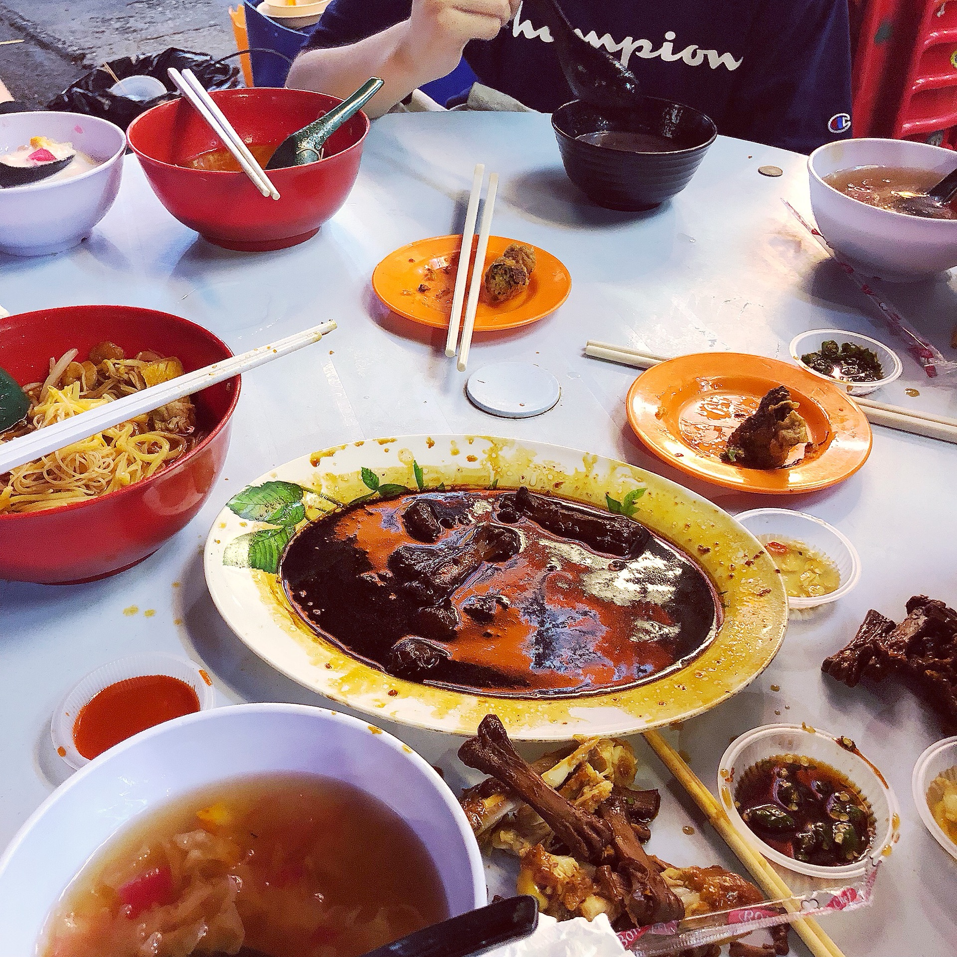 天皇鸡爪、各种糖水、海南鸡饭、肉骨茶、权记鸭肉粥!