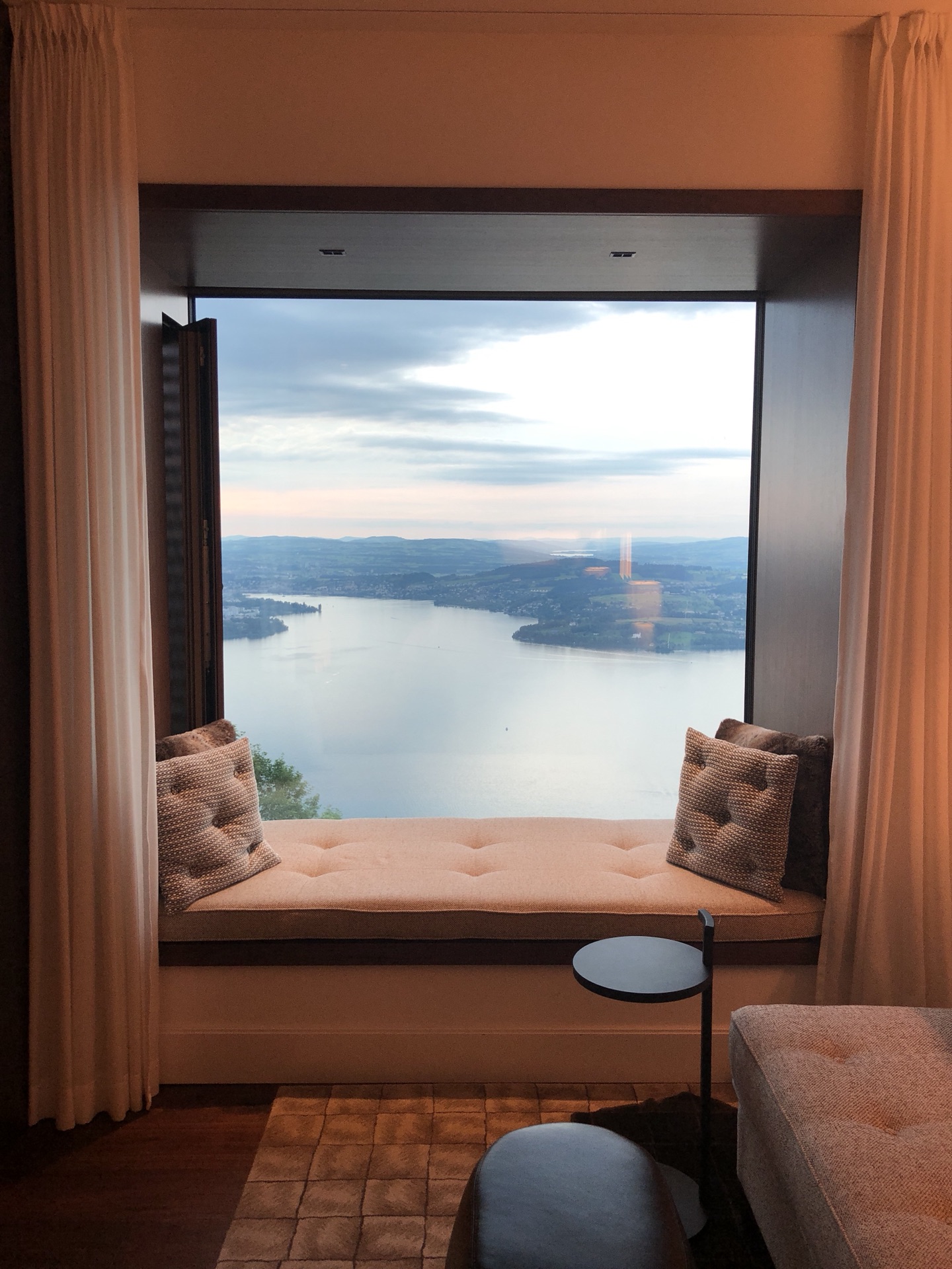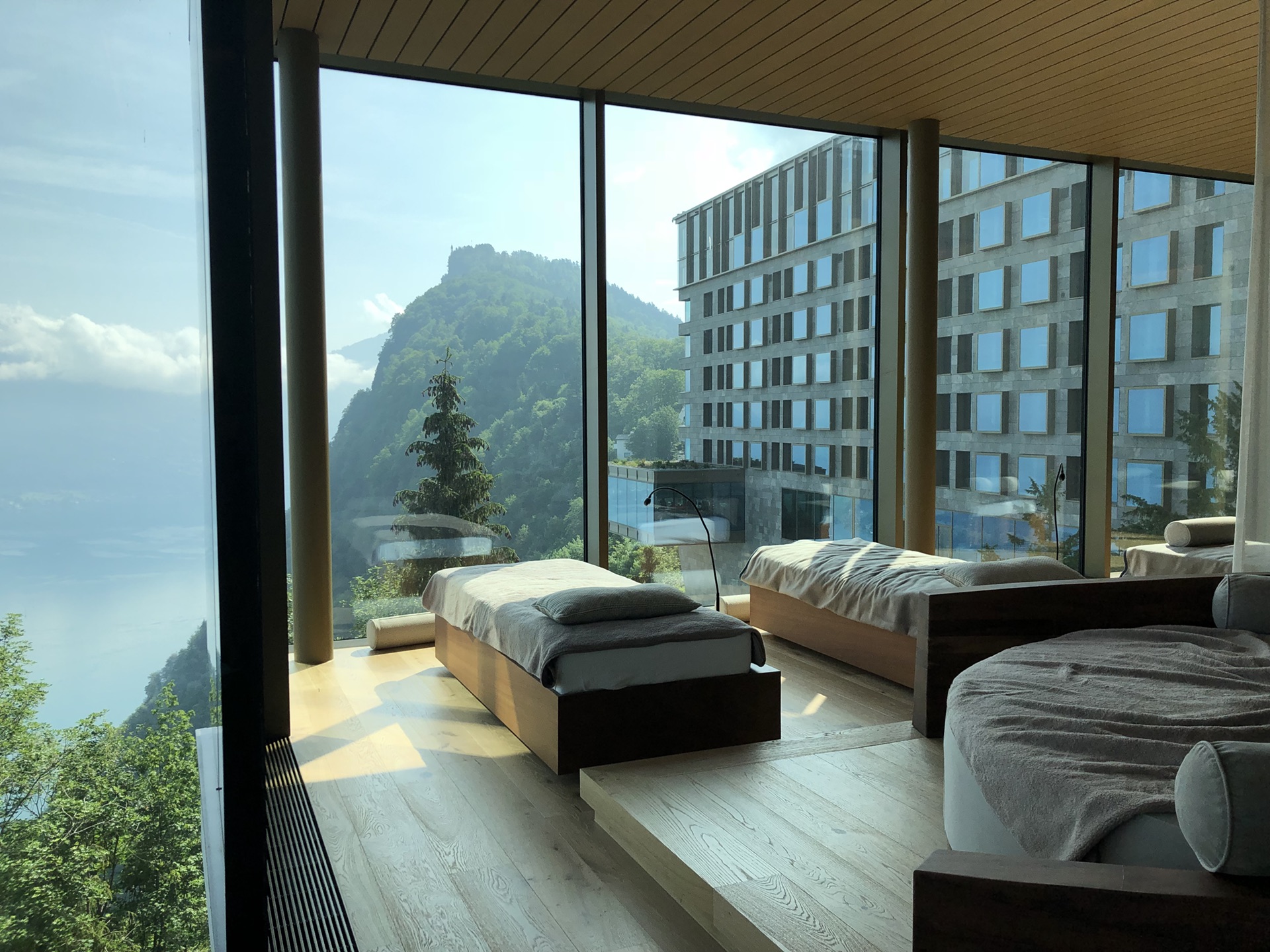 瑞士Burgenstock Resort 非常棒的酒店,值得推荐,里面有三家酒店,有高尔夫球场 ,配有多间带露台的餐厅,1个室内游泳池,2个室外游泳池,Spa室,我们订得是Hotel&Alpine Spa的房型,此类房型每个房间窗户都是直面湖景和山景的,是离网红温泉泳池最近的,价格是3000多一晚,包含了温泉池的使用,停车,坐小火车及游艇,房间内有欢迎水果及巧克力赠送,房间景色太美了,看出去就是一副画。我们是自驾到酒店,需要开一段山路,瑞士自驾基本都是山路,对于老司机没有问题,从酒店还可以坐小火车及船就到达卢塞恩的市区了,大概40分钟,船上风景十分好,酒店服务也超级棒。在Booking上可以预定到。