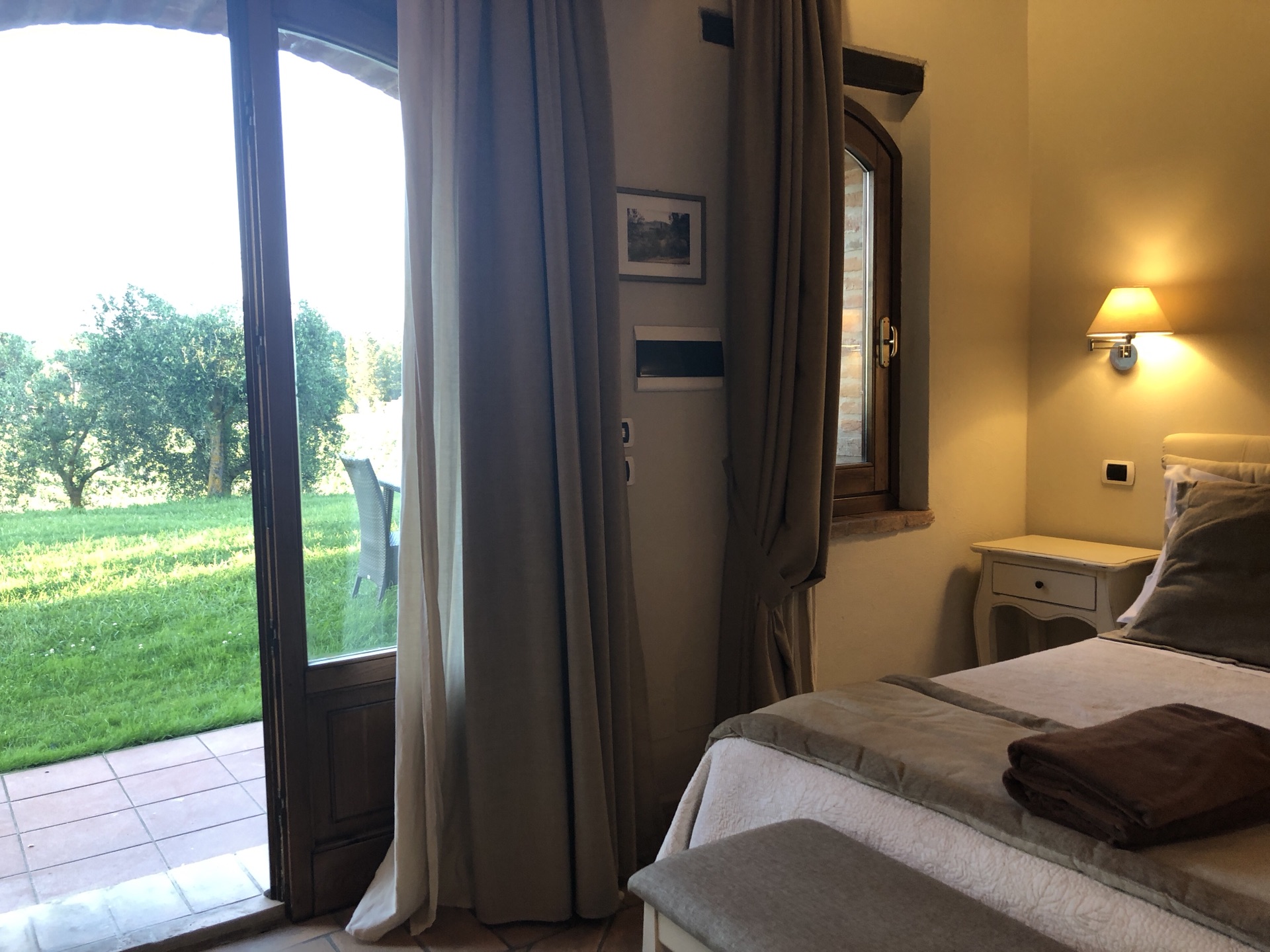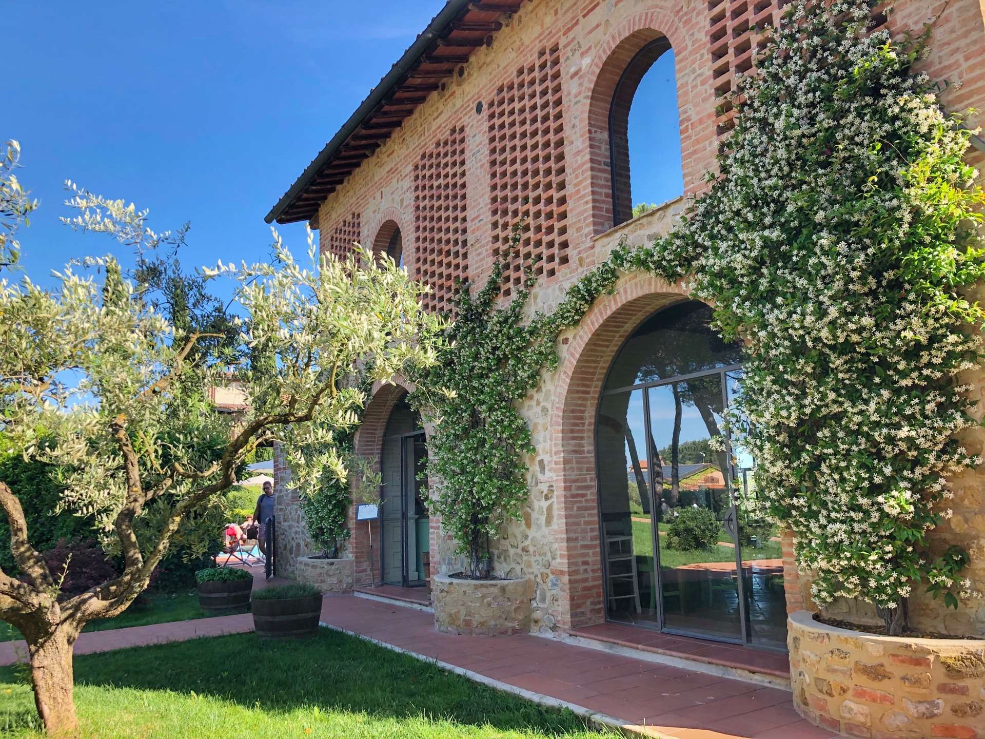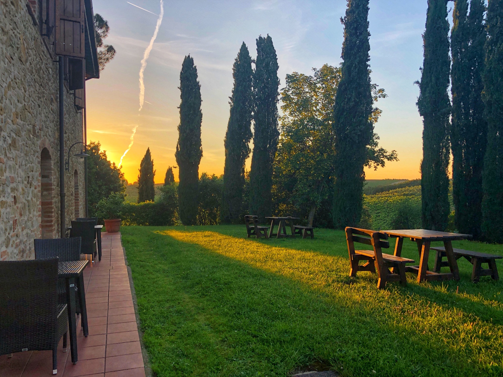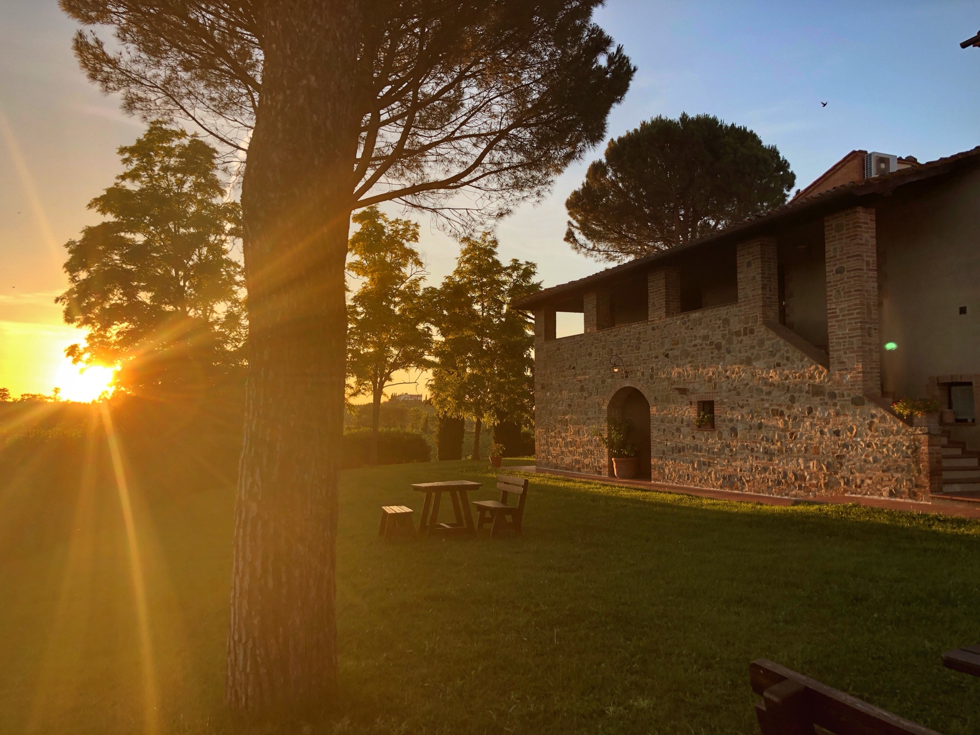 托斯卡纳酒店 Agriturismo Mormoraia 非常适合自驾的地方 酒店是个农庄 有自己的葡萄园 并拥有自己的酿酒 到达酒店有个品酒活动 因为时间关系没有去 选择了去小镇玩耍 非常适合发呆的酒店 环境非常好 可以看到圣吉米纳诺的景观 日落的景色十分写意 酒店的晚餐小贵 牛扒很不错 8-9月份来托斯卡纳应该是不错的季节 一大片一大片的金黄色 丰收的季节 到了冬天这里的人便开始放长假 因为冬天托斯卡纳十分寒冷 酒店价格1600左右 因为我们是三人入住