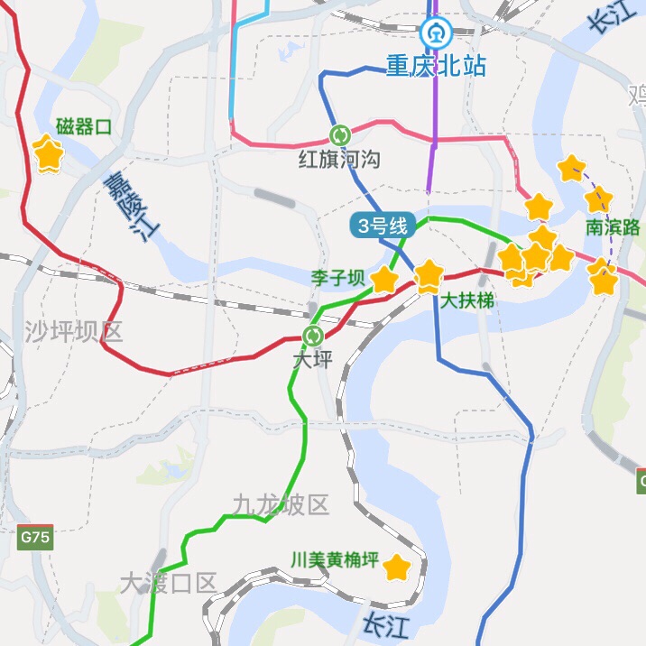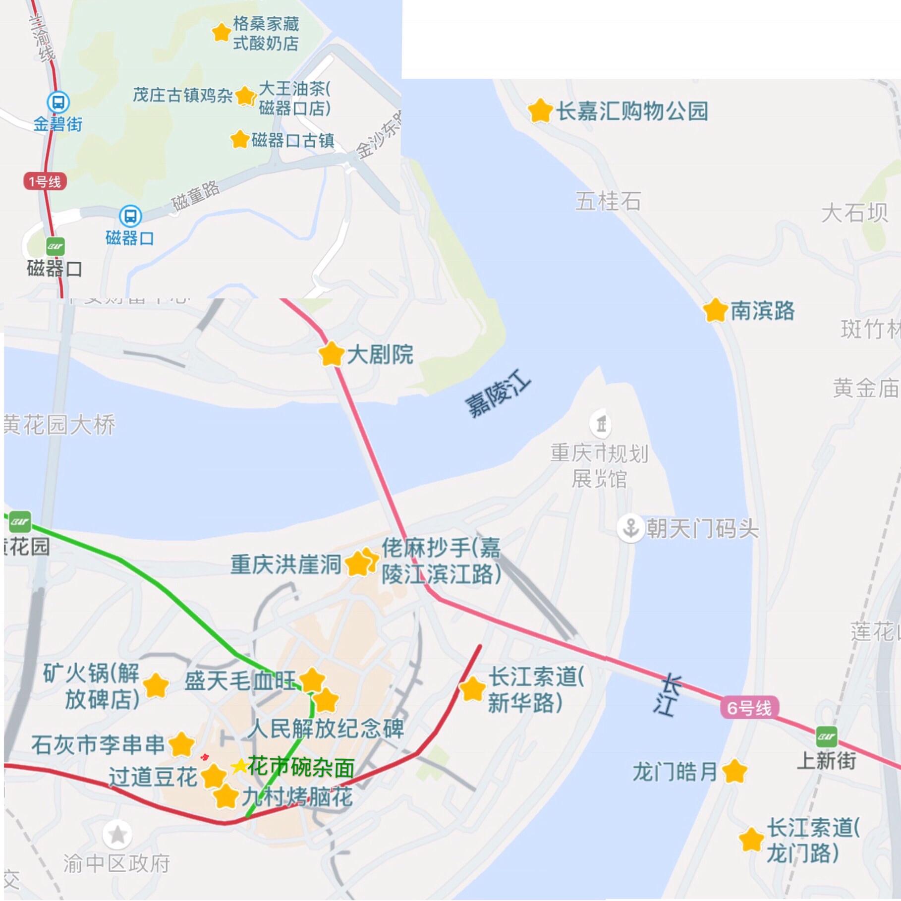 ⬆️重庆地图细节标注:左上图是磁器口,图右侧是南滨路,其余是重庆中心地带(解放碑、洪崖洞等)