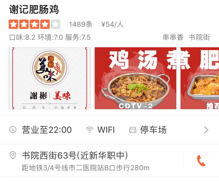 大约5点左右,肚子咕咕叫,于是决定出去觅食,民宿走出来没多久就到了*谢记肥肠鸡*