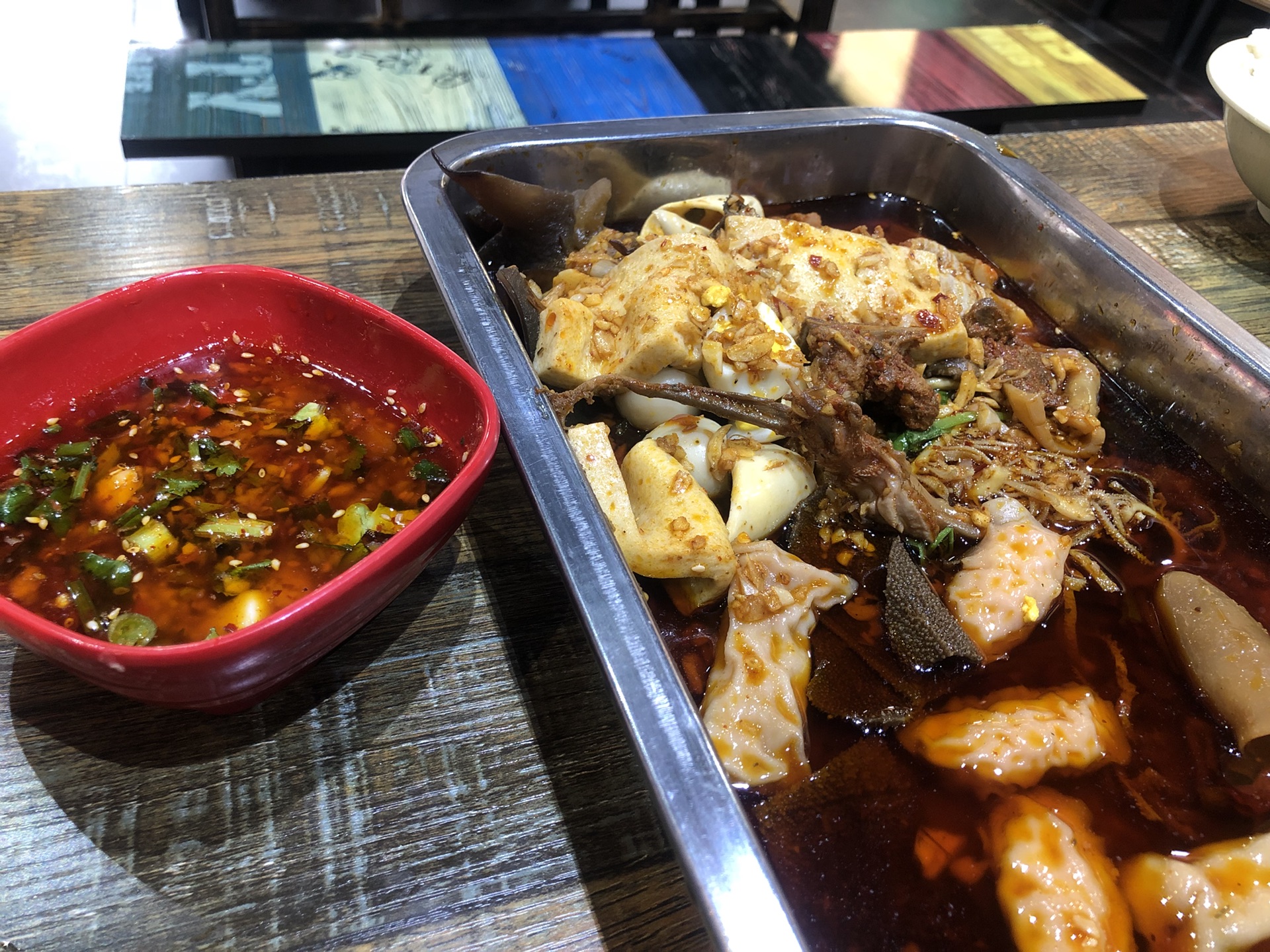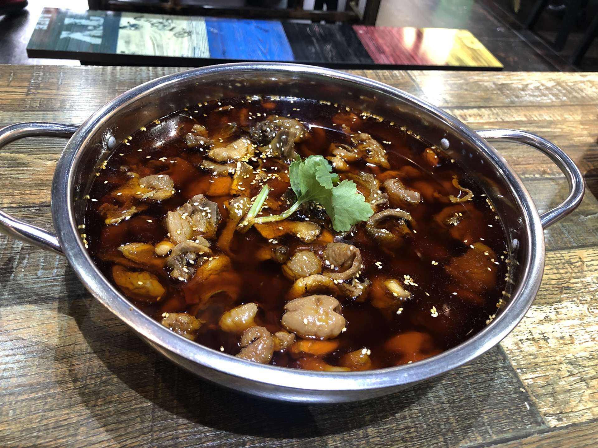 原计划是去*纯阳馆*吃面和抄手,*冒椒火辣*是最后一天去太古里店吃的。结果从地铁宽窄巷子站走到*纯阳馆*的路中正好看到*冒椒火辣*的总店,想了想还是进去吃了。