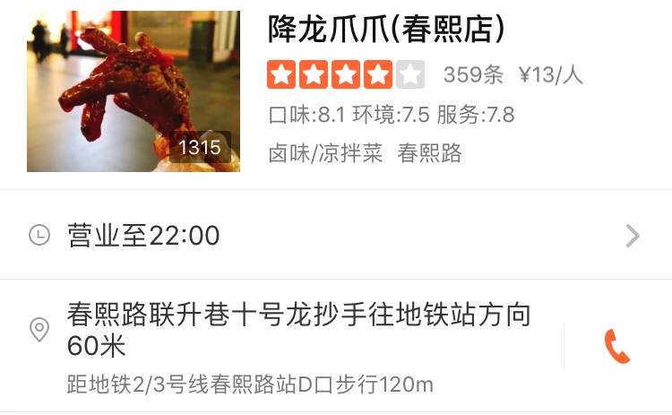 根据地图找到*降龙爪爪*已是晚上8点,这是一家上过天天向上的店,那期节目我还正好看到过。