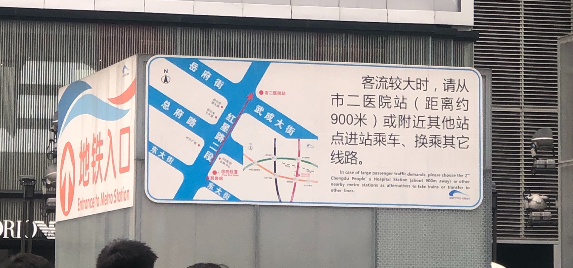 本来要选春熙路的,后来不知怎么选到市二医院,但是位置挺好的——3、4号线交界,而且春熙路有些时段还限流?!