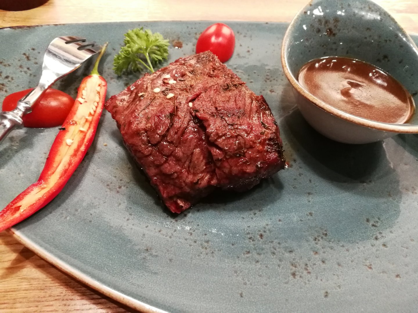 坐完火车已经是九点多了,我们等来了性价比超高又美味的牛排,才100卢布