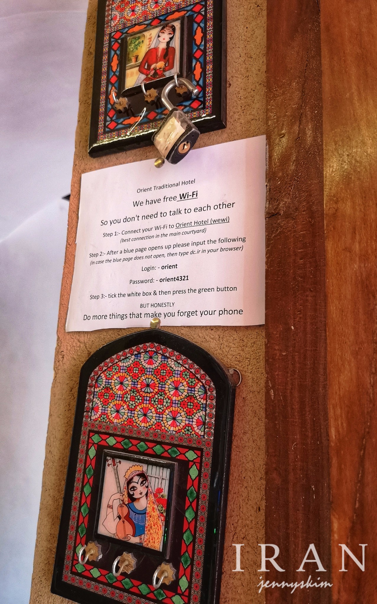 1. 自设拉子酒店之后发现伊朗的酒店都可以walk in或者电话询问自行砍价的,价格的高低看自己的道行,曾在booking上看好的赞迪耶酒店(Zandiyeh Hotel)三晚价格高达1600多人民币还要加额外税,携程上的Aryobarzan Hotel当时三晚价格也在1500元左右,后来到了才发现价格水分太大,完全没必要提前预定,都在Roodaki Street附近。