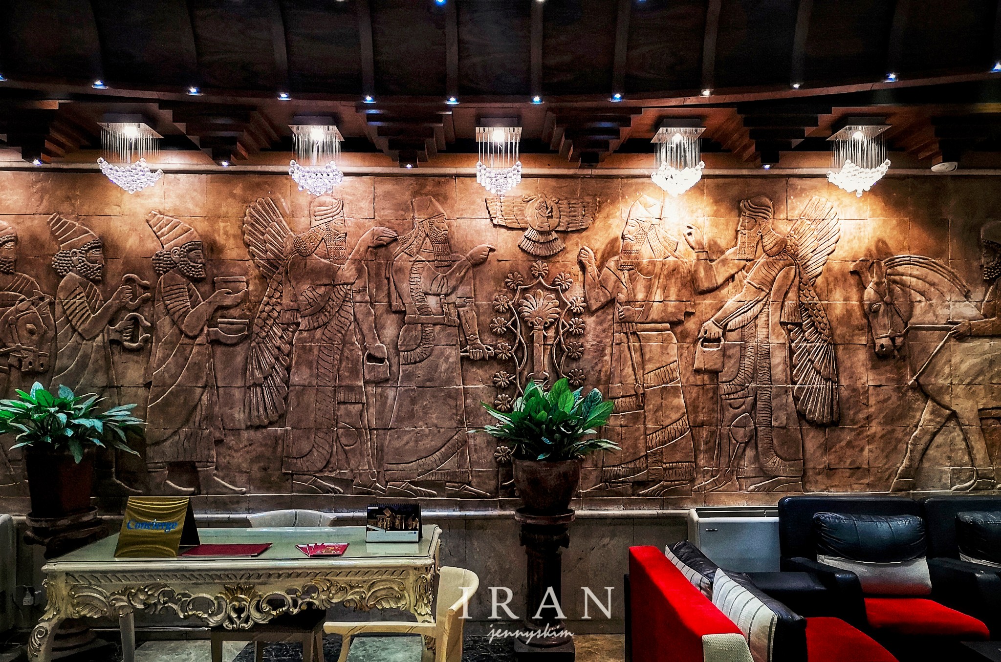 酒店内墙壁上的古波斯浮雕