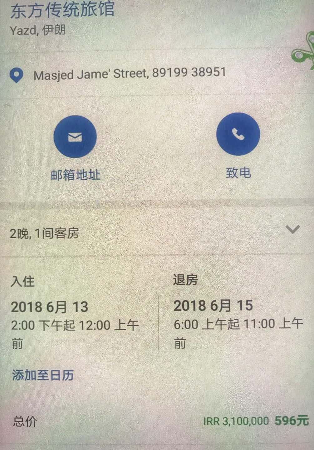 .....不得不说政治局势瞬息万变,这可害苦了我们这些仍在迟疑如何选择酒店的小旅友们。还好我在四月底前在booking上订了亚姿德和伊斯法罕的部分酒店(后续会提到booking上价格及部分酒店叫价和砍价的坑),也算是具有历史意义的一次预定,必须截图留念啦!同时我还发现,已预订的订单价格有所变动,貌似有些减去了 booking原本预收的佣金,也算有得有失吧~