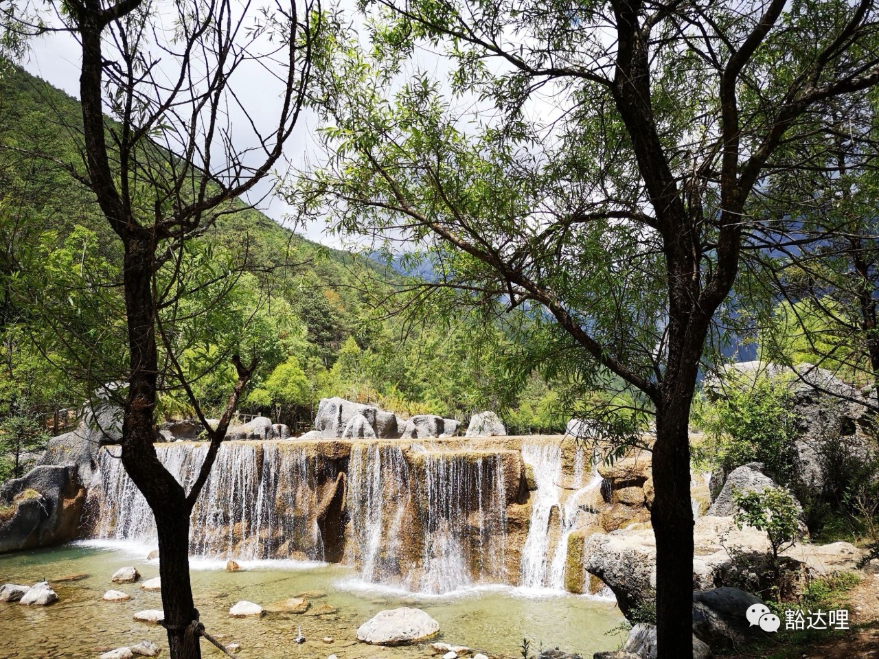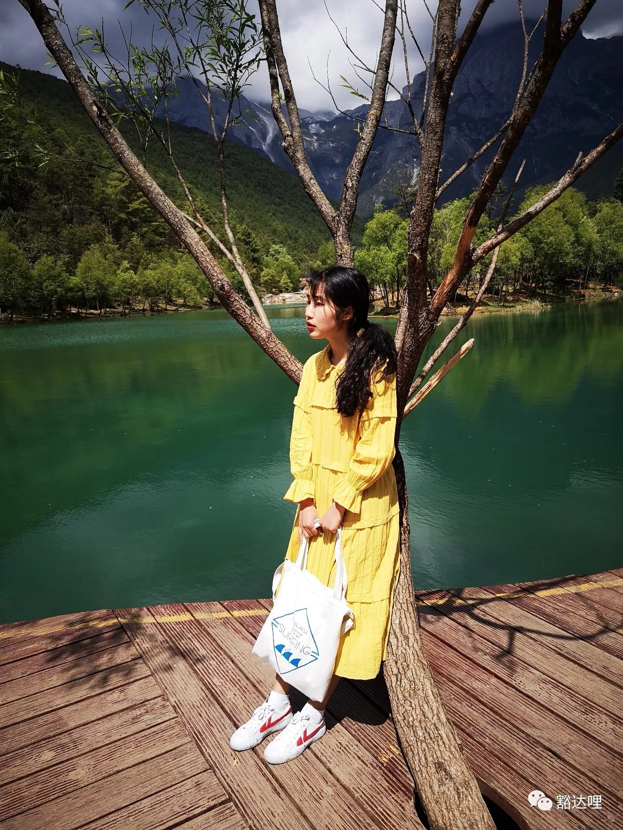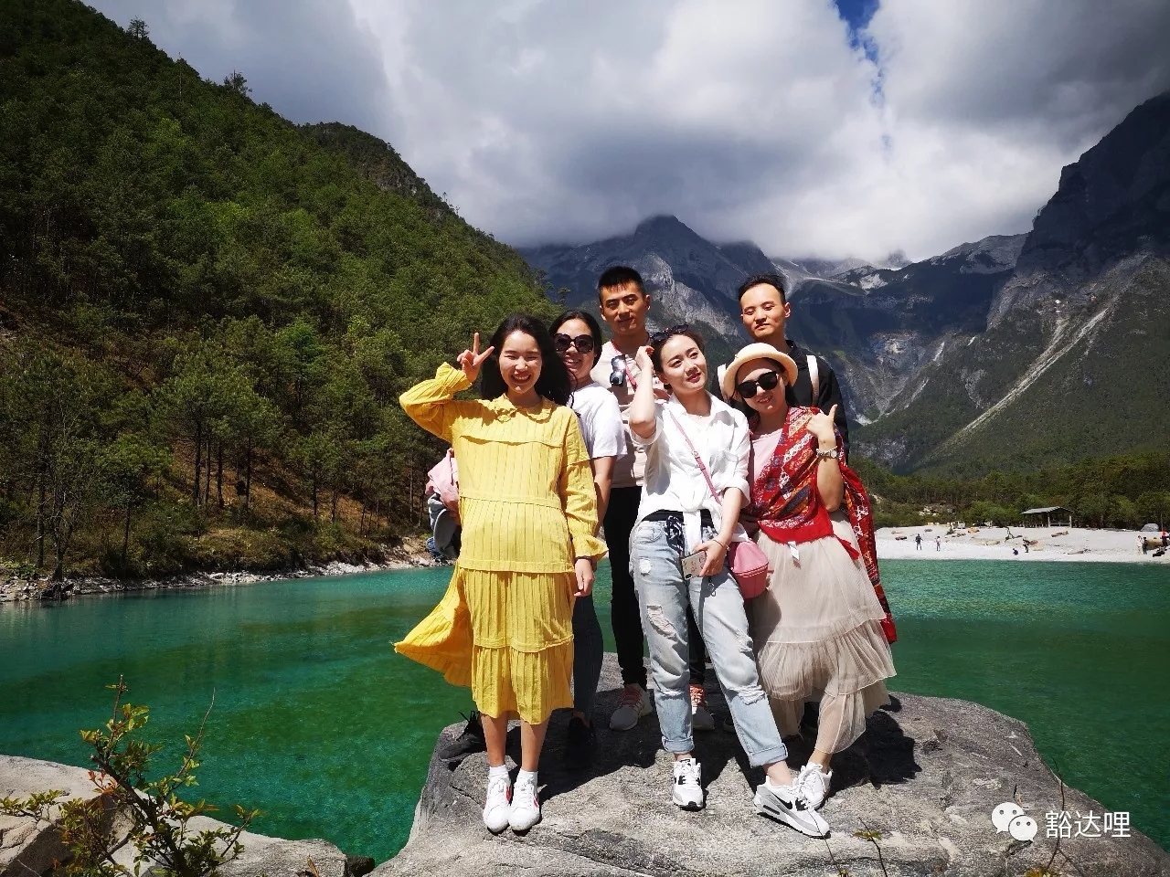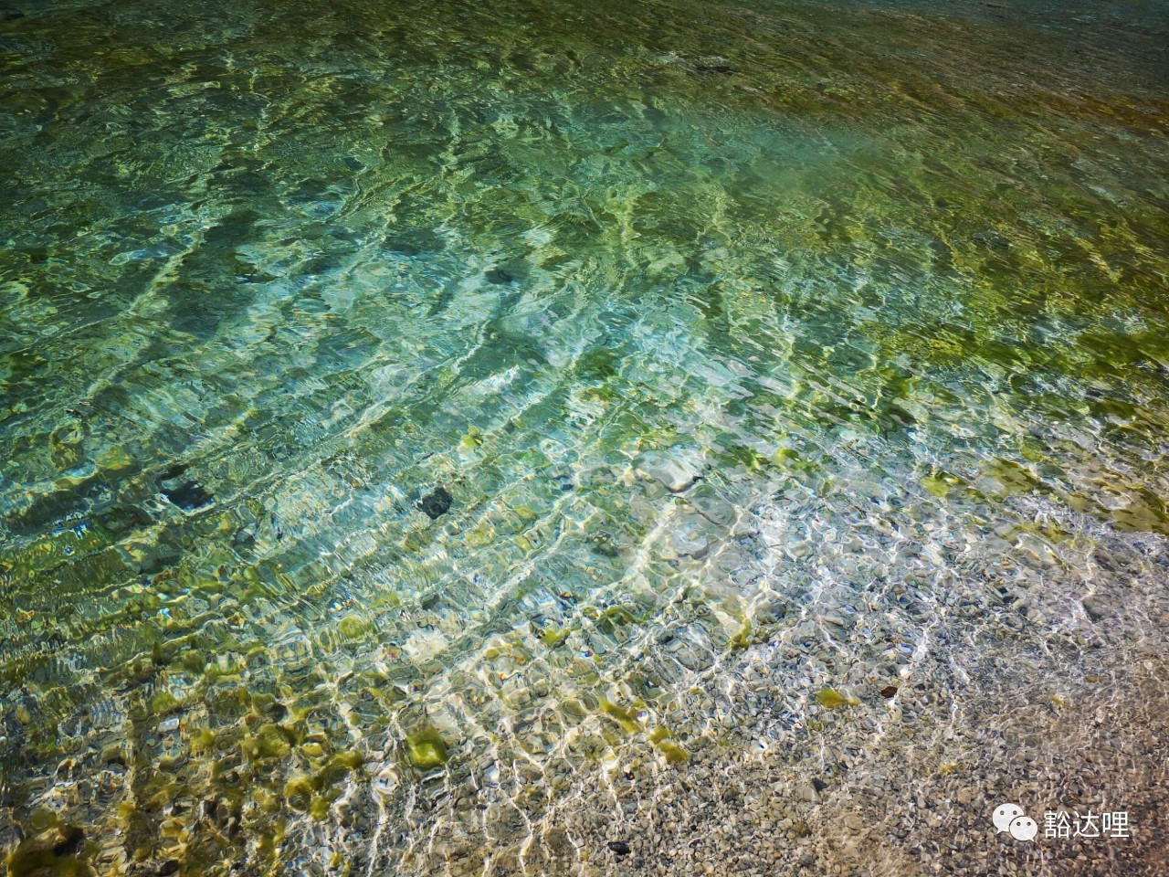 蓝月谷里所有的湖都清澈见底,蓝绿色的水下透出下面的石头,粗沙粒子,旁边有人工浅滩,我们便是站在浅滩边拍照留念,有块石头看到有小姐姐上去拍照好好看,后来又有小姐姐不慎站上去拍照滑下去,洗了个蓝月谷水澡,石头周围的水瞬间变成乳白色,因为石头粘水易滑倒,后来我们就放弃了那石头。