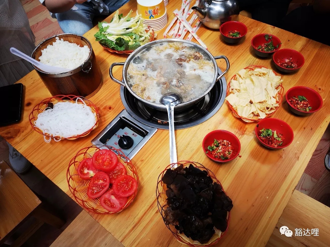坐上公交车,回到一个纳西小寨吃午饭,很棒的土鸡腊排骨火锅,因为是高原,缺点就是米饭太硬了,怕体力不足,我还是吃了三碗米饭,哈哈哈哈。
