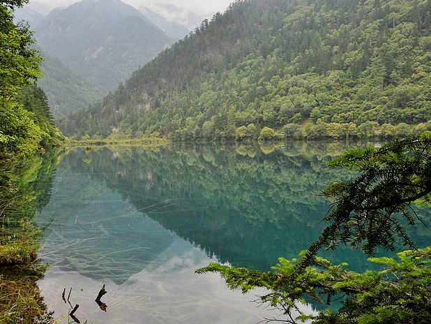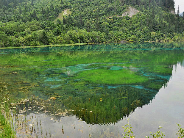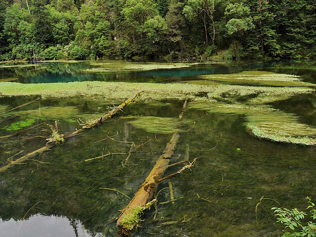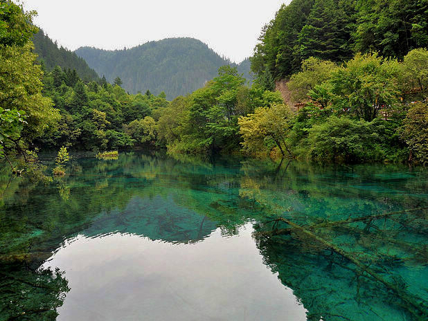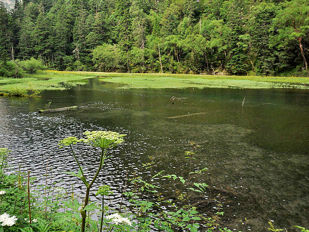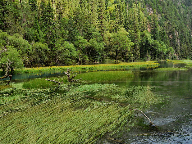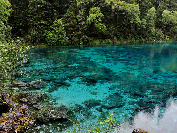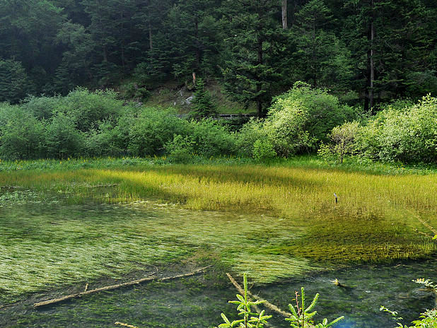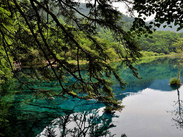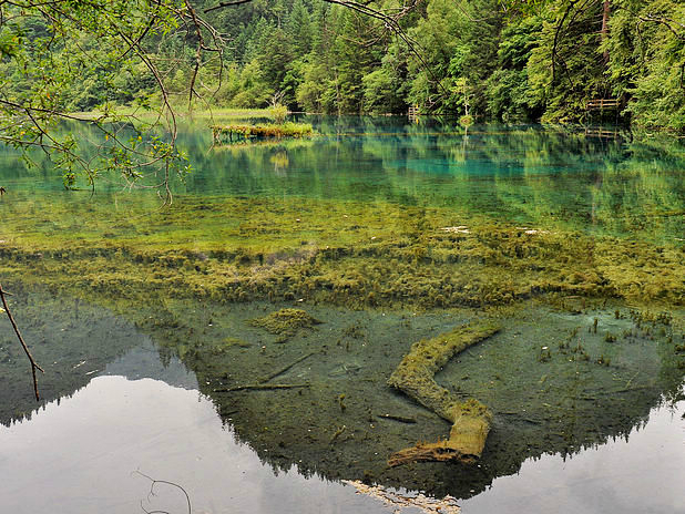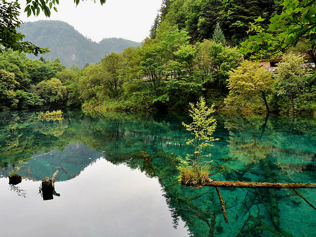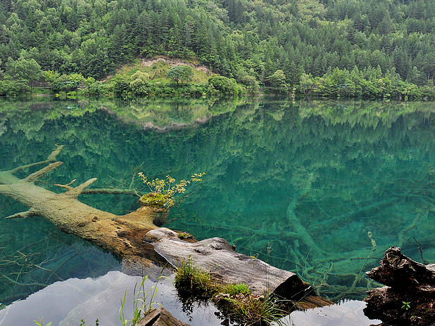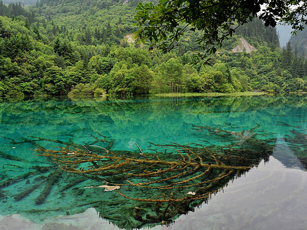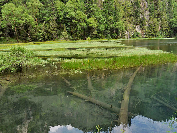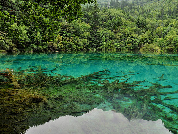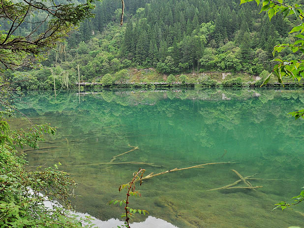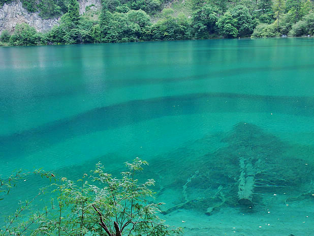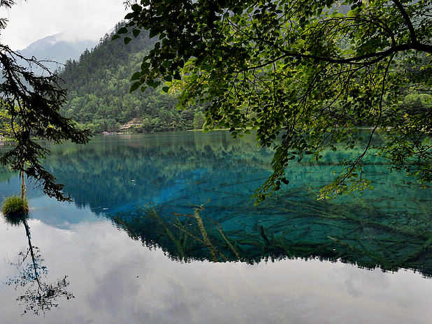 海子中的残肢断柳给/poi/5423057.html{九寨沟(/poi/5423057.html)} 增添了一份古老的神秘感