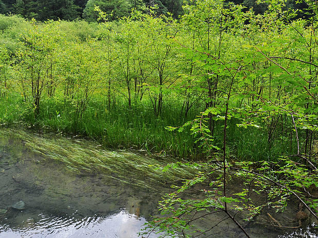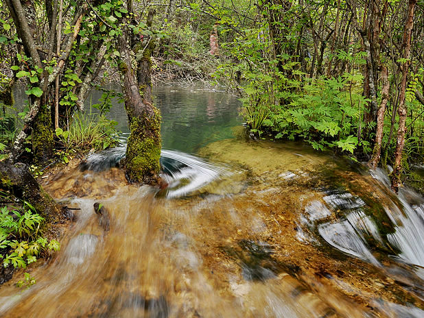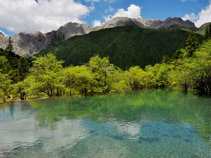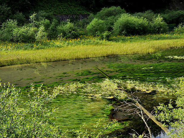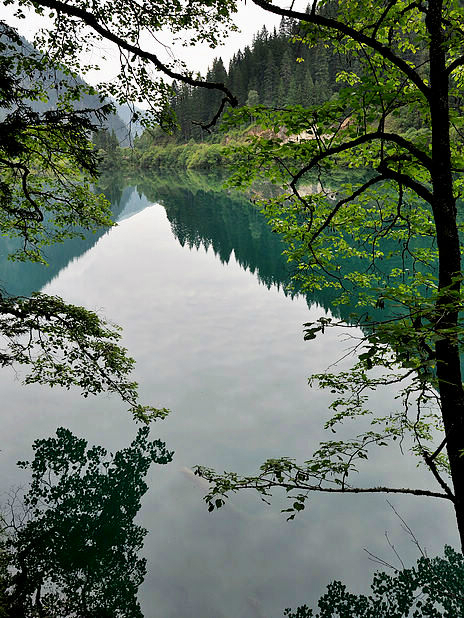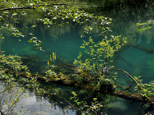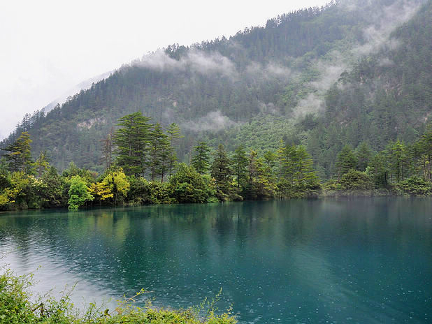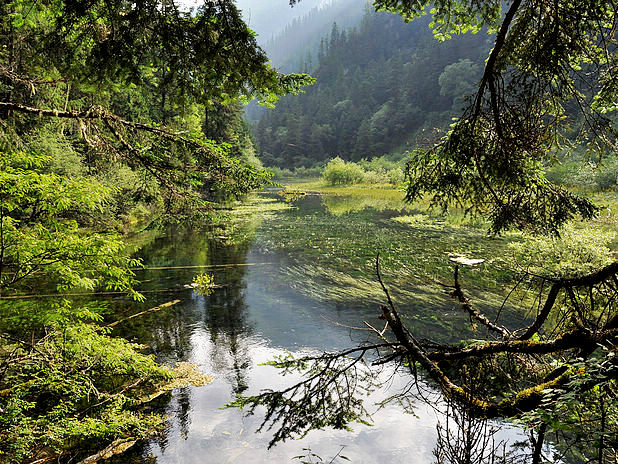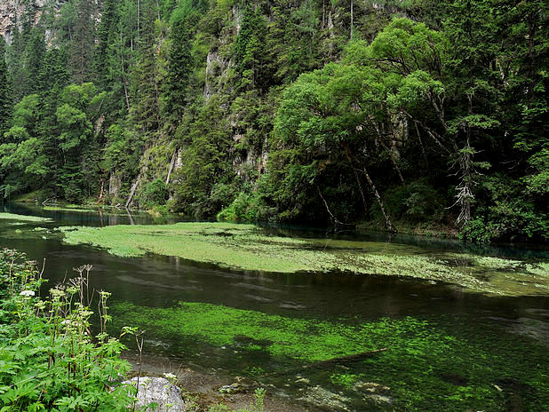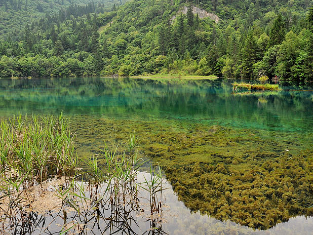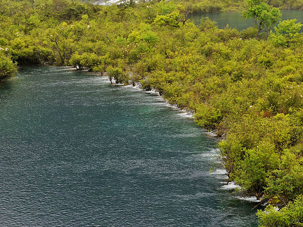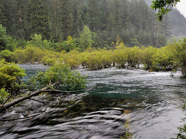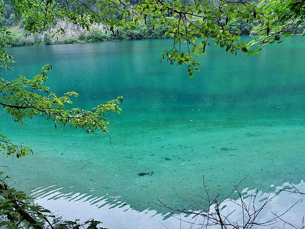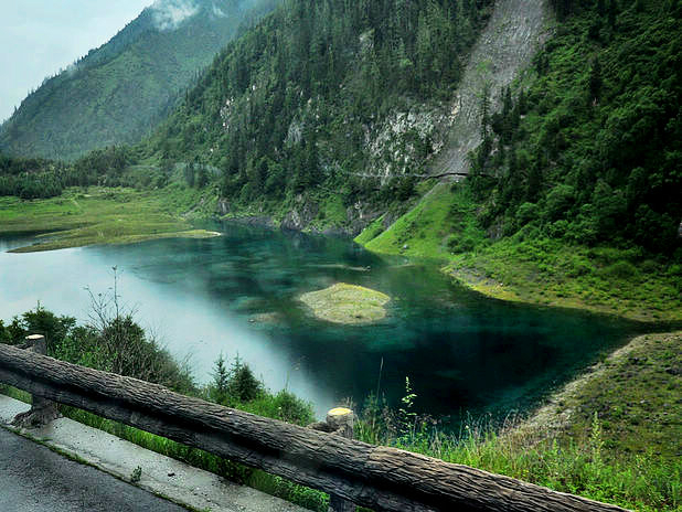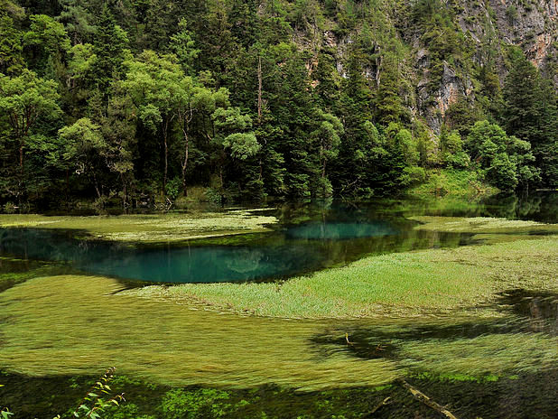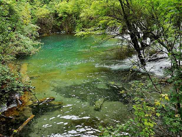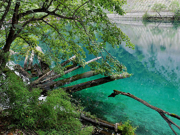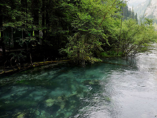 海子中的残肢断柳给/poi/5423057.html{九寨沟(/poi/5423057.html)} 增添了一份古老的神秘感