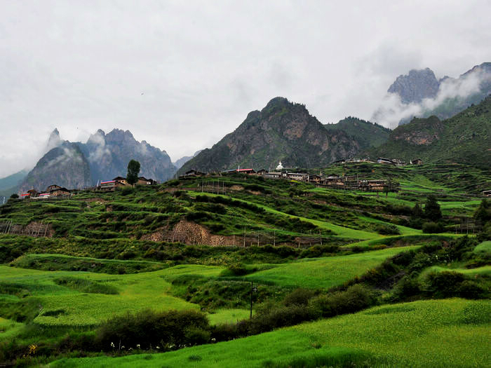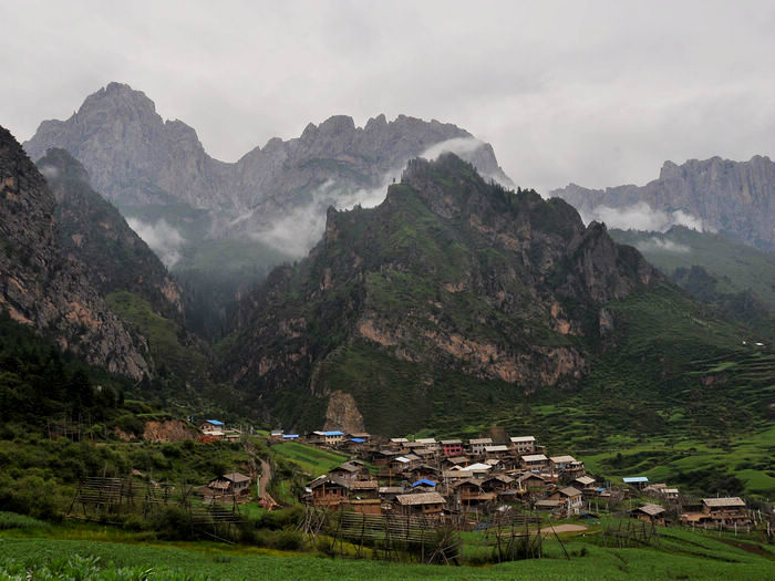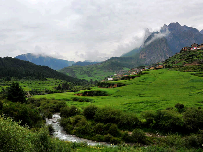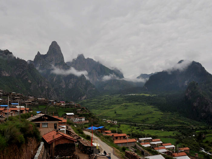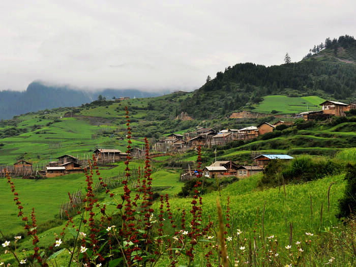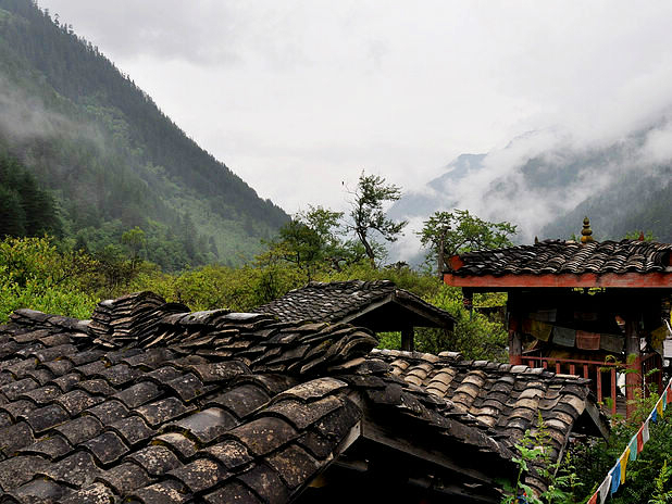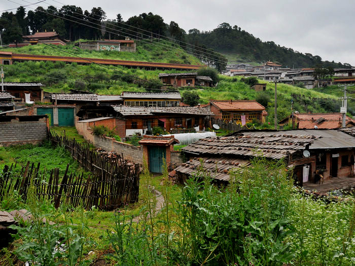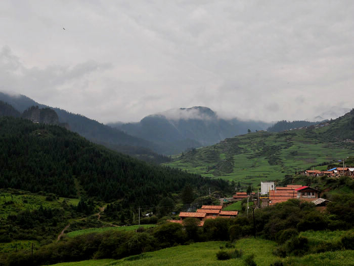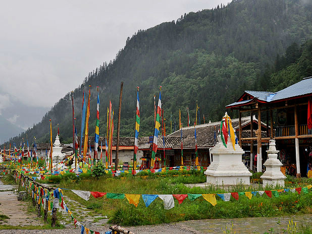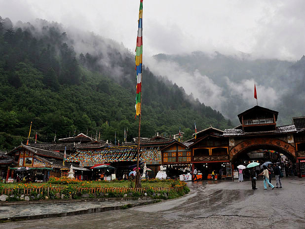 在这个寨子下了车,后来发现其实没什么东西。前面就是诺日朗中心站了,游客已经一波波的在出景区,而我仍然继续着我的脚步