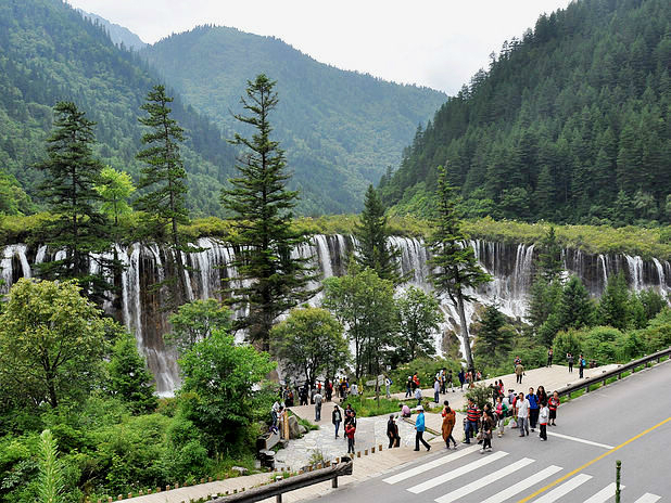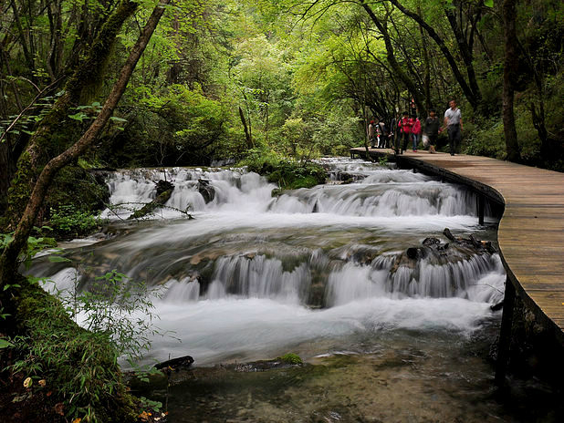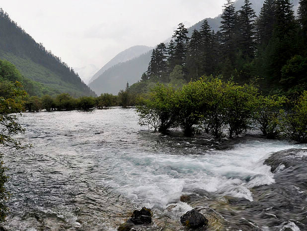 右沟:上午7点多点进的沟,我先坐环保车坐了半个多小时到最上面的原始森林,大致的逛了一下,景色一般,就和一般的森林一样。之后一直步行到天鹅海(这段路有点长,有5公里多,可以选择乘车),再根据指示牌一直往下步行,逛箭竹海,熊猫海,五花海,珍珠滩,镜海一直到三沟交汇的诺日朗瀑布。这时差不多已经2点多了,中间我没有休息过,所以一直步行还是比较费时的。