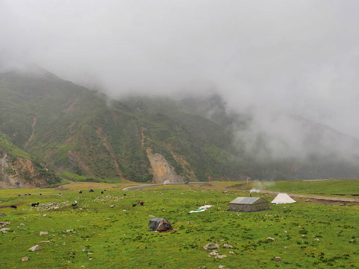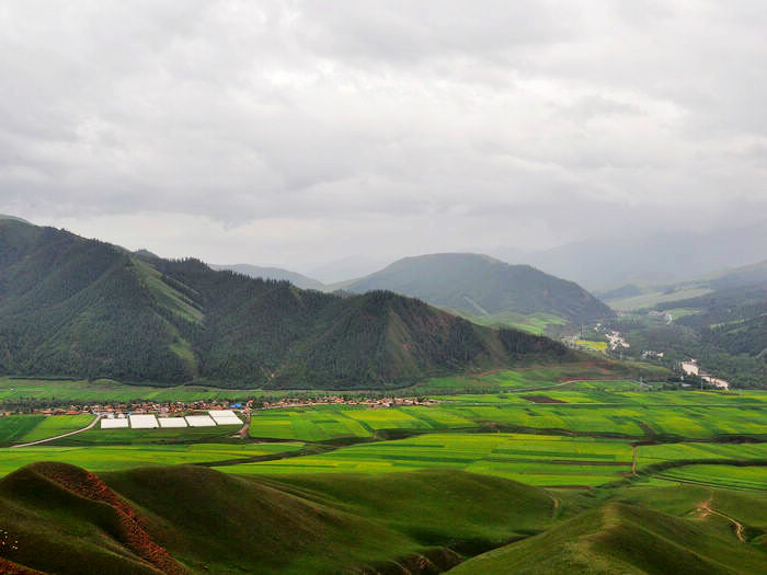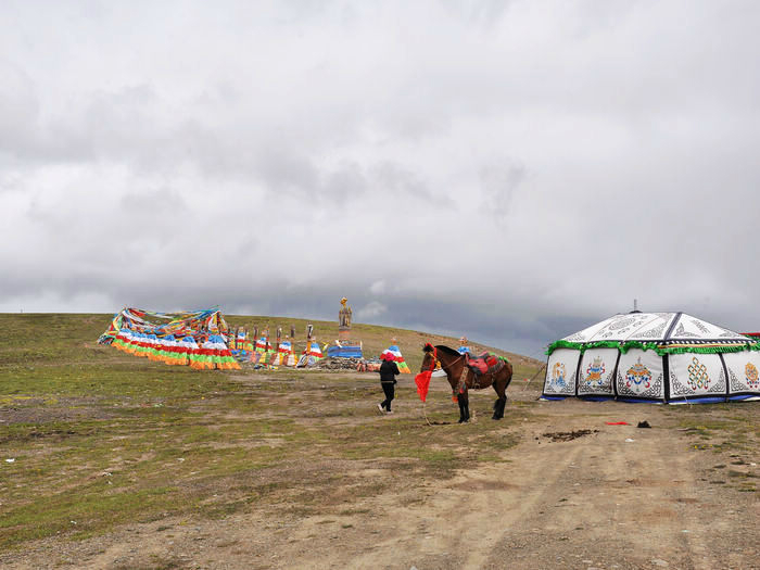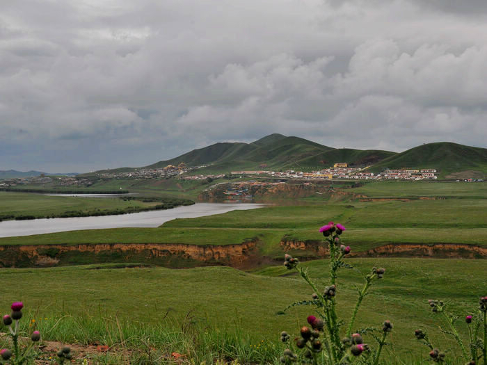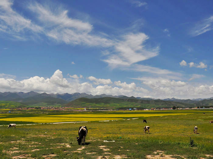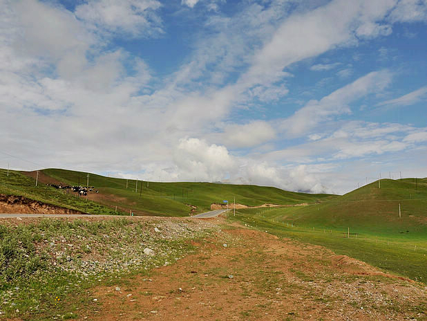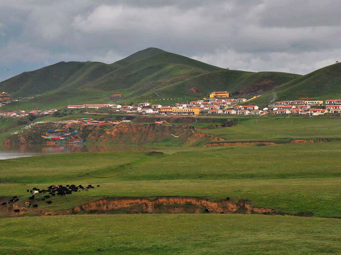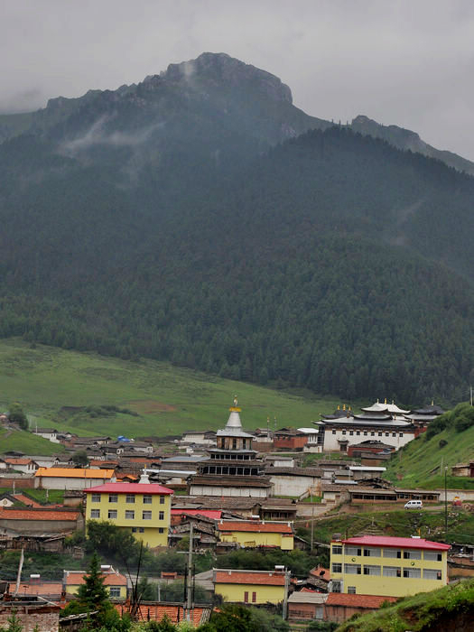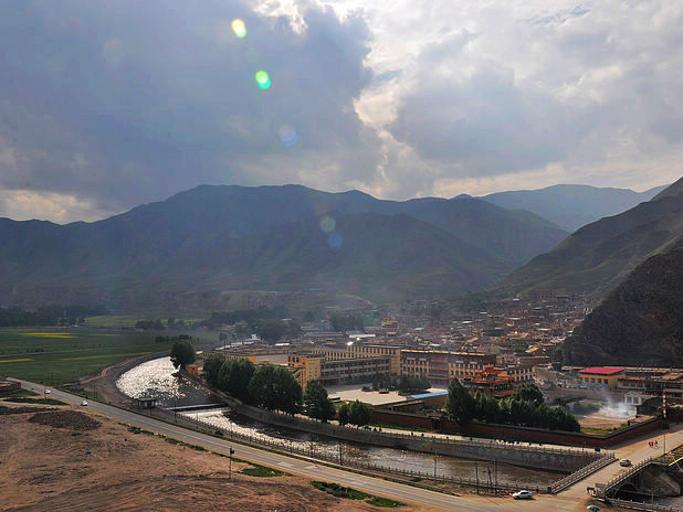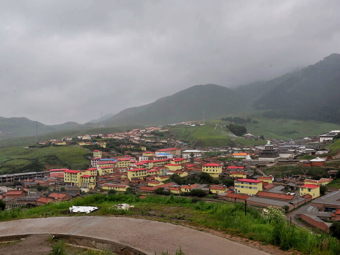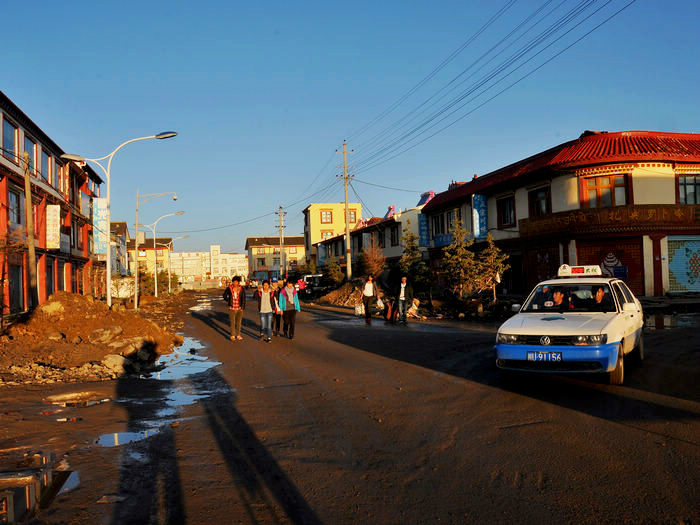 我们依依不舍的被师傅给喊走了,我们舍的不是这儿的美景,而是没有看到却希望看到的日落情景,还有我们这群陌生人的路上之交。师傅把我们三个放在了诺尔盖县,把她们四个带回郎木寺,明天把他们顺路带去/travel-scenic-spot/mafengwo/10783.html{兰州} 。我们三个找了个三人间住下,去旁边的一家川菜馆吃了晚饭。我还打听到明天如果7点钟去/travel-scenic-spot/mafengwo/10035.html{成都} 的大巴车有空位的话,可以坐那班车到川主寺的。