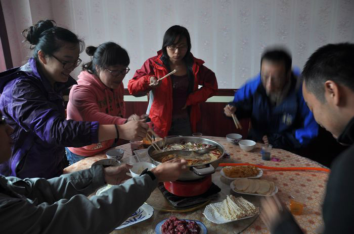 在郎木寺吃过回族的火锅(那天阴雨天气,大夏天的郎木寺这儿还是很冷,就找了这家回族的店吃,上菜慢,服务不太好,菜到马马虎虎。距离远,大家都站着吃,代渡伦还去买了干面,于是与两个南方人和四个北方人讨论起面来,我们两个南方人的观点是只要把面放到滚/travel-scenic-spot/mafengwo/145826.html{水里} 一煮马上可以吃了,他们是要煮很久才可以吃,最终没个定论