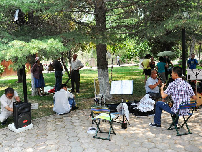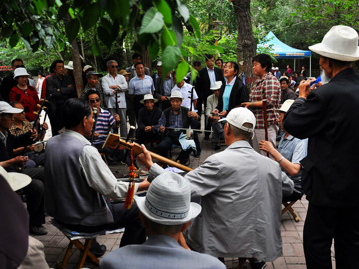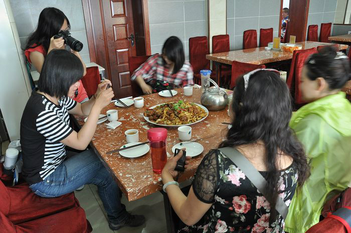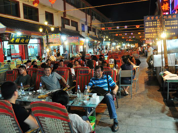 吃过路边摊的回族酿皮(在小西湖附近的路边很多回族人推着车子在卖,4块钱一碗,很有嚼劲,上面的调料竟然还有芥末)