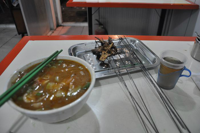 吃过撮鱼面(有两种做法,把炒好的料和面放在一起或者分开放,味道可以想象,10块钱)