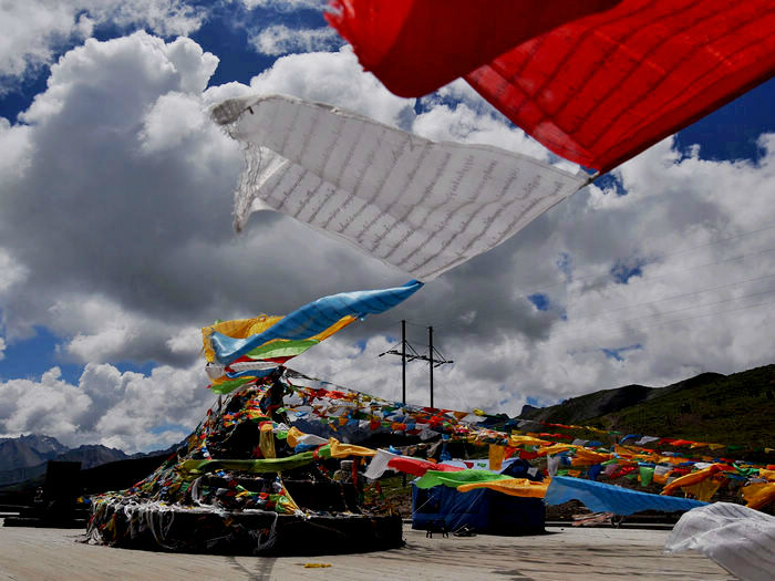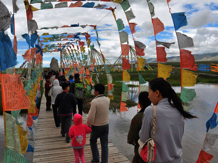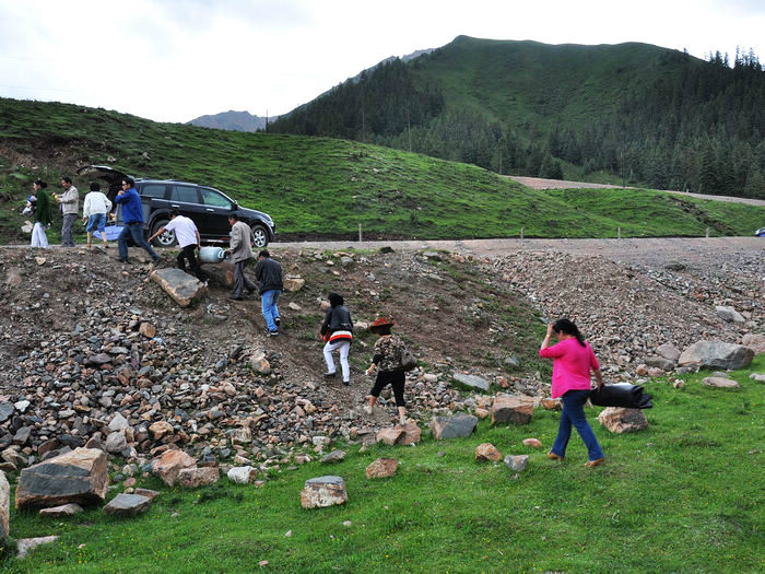 我们也没有去正规的那个景点,旁边一个藏民老妇女坐在那儿收钱,真不想给她,难不成这块地还是你的不成,只不过才2块钱,给就给了,以免过会多事。