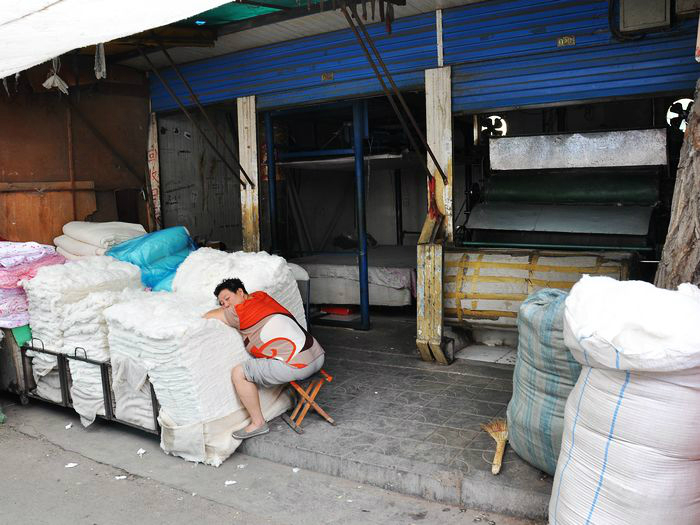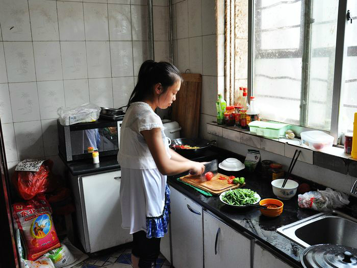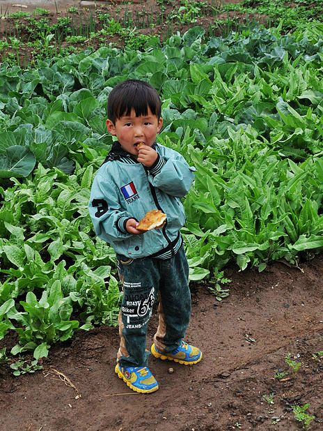 下图他正在认真的掰馍馍。