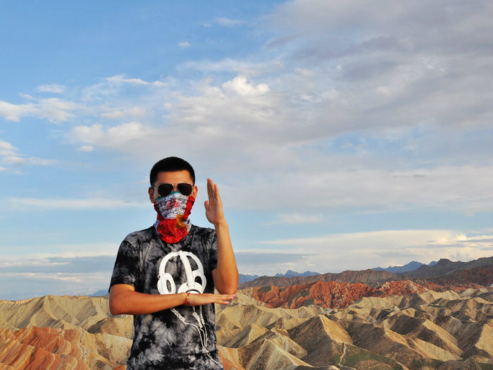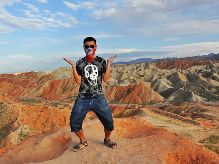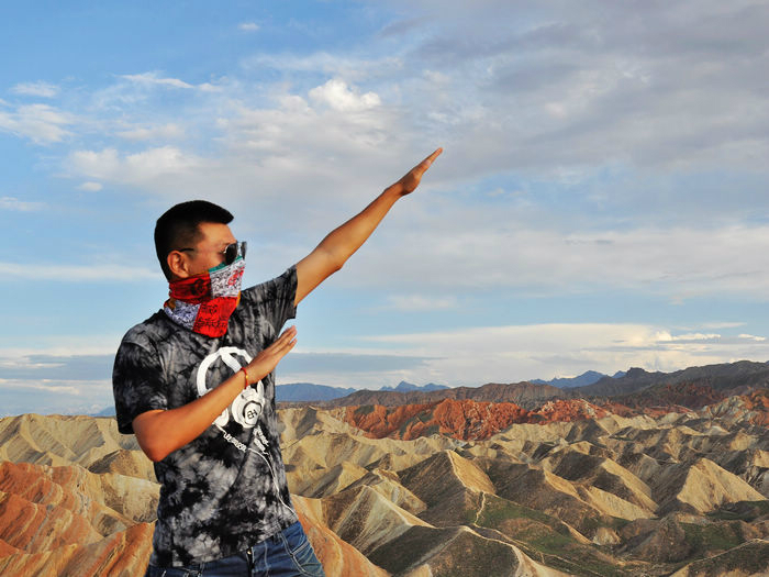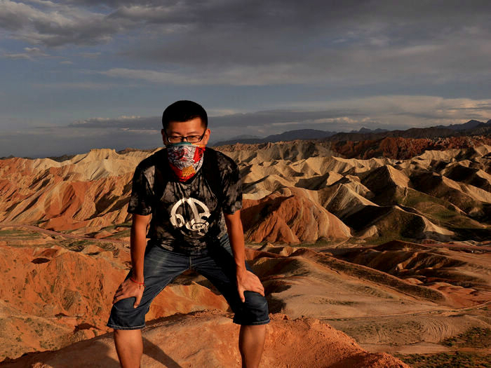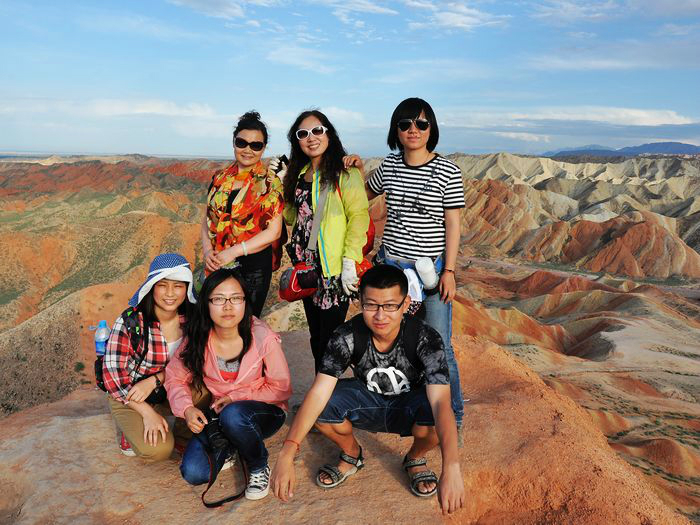 下图在丹霞尽头所摄。下排从左至右分别是大学刚毕业的小付和小万,还有熊猫手很明显的我。上排从左至右是小万妈妈的朋友,小万妈妈和还在读警校未来的霸气女警察张佳欢。PS:一群女的我有点吃不消。