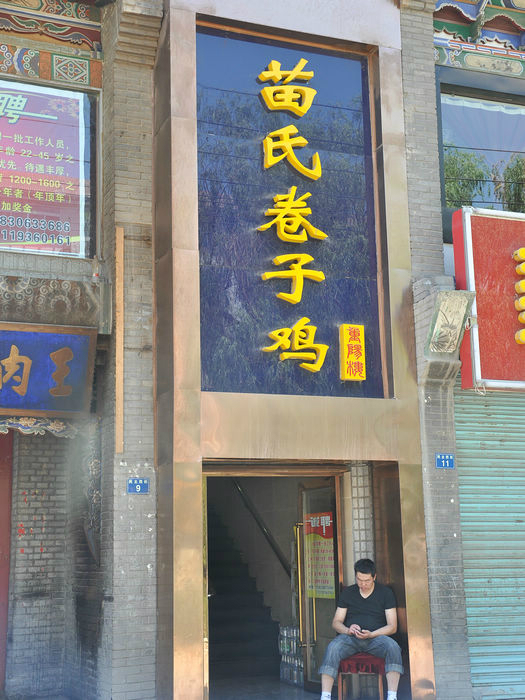 在/travel-scenic-spot/mafengwo/11340.html{张掖} 吃过苗氏卷子鸡(超级大一盆,面是可以加减,我们六个人只吃了这个,最后还有剩,总共好像90块。就是面和炒鸡块放在一起再炒一炒,鸡有点老,面的形状很奇特,还相当的有嚼劲)