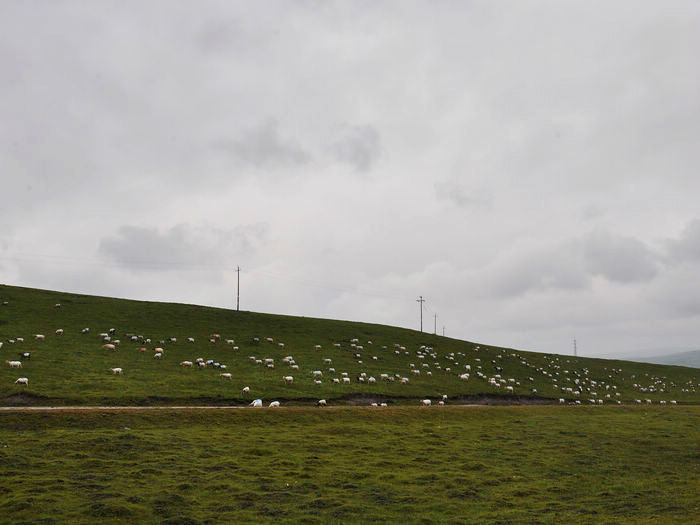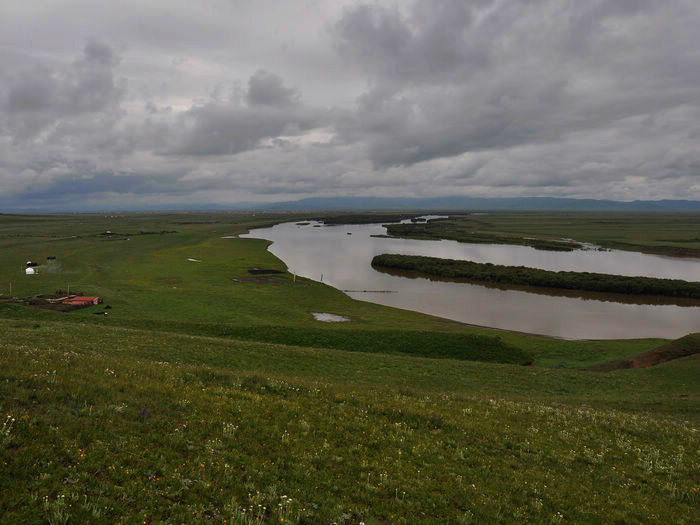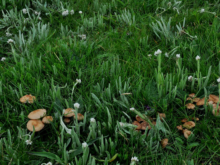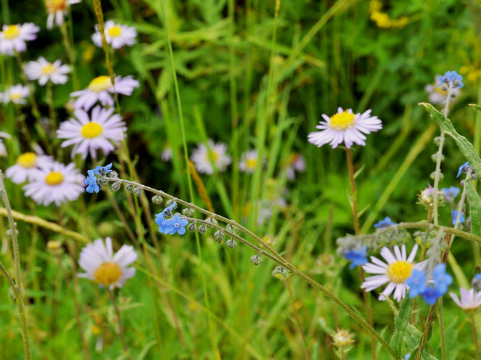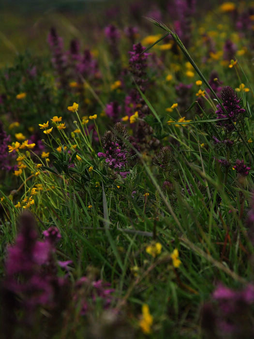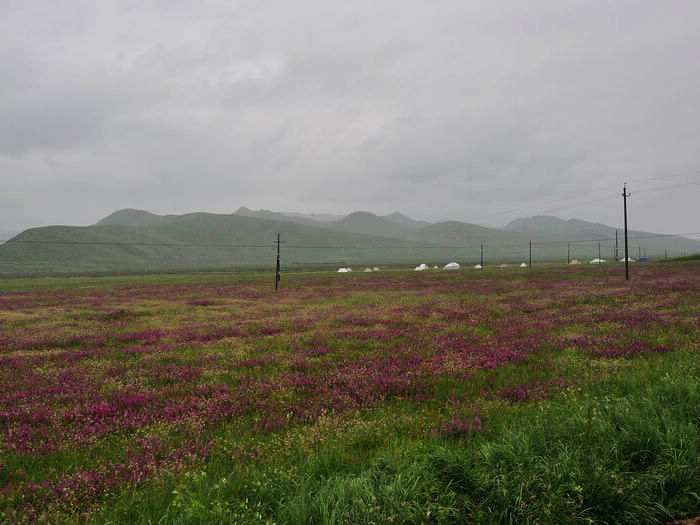 草地上开满了野花野草,没有太阳的时候多了份阴沉