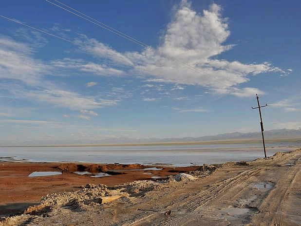 坐车路过季节海,是有季节性的,有时候没有水,有时候有水。