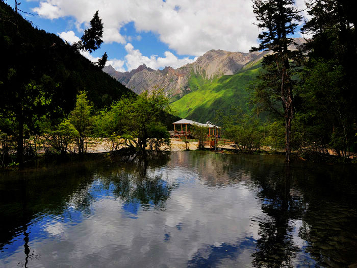 直接在/travel-scenic-spot/mafengwo/64706.html{长海} 坐车去了五彩池,这儿堪比五花海,像一颗蓝宝石镶嵌在翡翠之中
