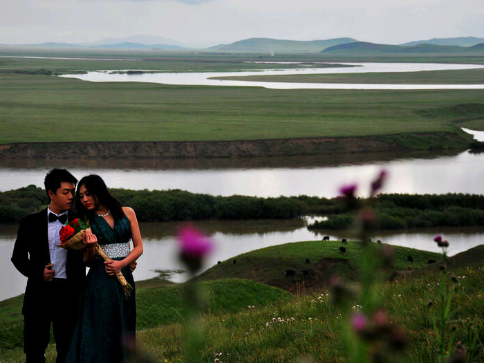 还有人到这儿来拍婚纱照,只可惜天空不作美,我也来帮你们一把