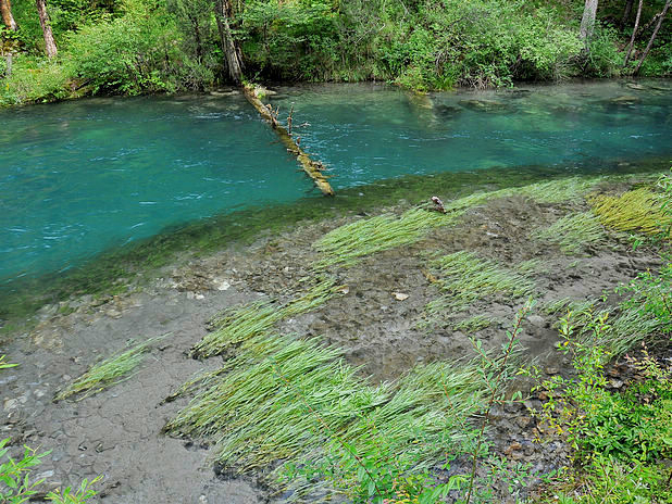 水草被水流压弯了腰