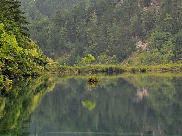 湖中的一颗小树想必很孤独,不过周围的美景也能为他消解一份孤寂