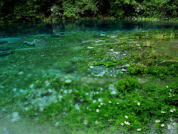 两汪绿的发蓝的水潭,就像两只眼睛