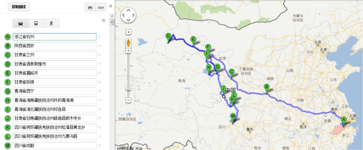 扯远了,回归正题,由于马上要去实习了,怕以后抽不出时间出来玩,就琢磨着这段时间去玩下。这次本来又是想去的/travel-scenic-spot/mafengwo/12700.html{西藏} ,后来觉得现在那边是雨季,川藏线有报道说泥石流塌方什么的不安全,时间又不是特别充裕,又受到我个小学妹的影响,她去走/travel-scenic-spot/mafengwo/141880.html{丝绸之路} 和/poi/10136.html{青海湖(/poi/10136.html)} ,之后到/travel-scenic-spot/mafengwo/10076.html{甘南} /travel-scenic-spot/mafengwo/11610.html{川北} ,对那边我还是看过些攻略,最终决定去那边。因为只有两个礼拜多点的时间,/poi/10136.html{青海湖(/poi/10136.html)} 和/travel-scenic-spot/mafengwo/10076.html{甘南} /travel-scenic-spot/mafengwo/11610.html{川北} 是一定会去的,就差去/travel-scenic-spot/mafengwo/10240.html{敦煌} /travel-scenic-spot/mafengwo/11353.html{嘉峪关} /travel-scenic-spot/mafengwo/11340.html{张掖} 还是去/travel-scenic-spot/mafengwo/10195.html{西安} /travel-scenic-spot/mafengwo/10577.html{华山} ,两个地方都需要四天时间,都去的话肯定来不及,当我犹豫不绝的时候导致/travel-scenic-spot/mafengwo/10156.html{杭州} 去/travel-scenic-spot/mafengwo/10783.html{兰州} 的火车票卧铺没有了,只能先去/travel-scenic-spot/mafengwo/10195.html{西安} ,再转去/travel-scenic-spot/mafengwo/10783.html{兰州} 。我也曾经想过要不先到/travel-scenic-spot/mafengwo/10035.html{成都} ,然后倒着走,这样走的人不多,我就怕找不到人一起包车。一开始就爬/travel-scenic-spot/mafengwo/10577.html{华山} 就怕太累影响后面的旅行,而且/travel-scenic-spot/mafengwo/10240.html{敦煌} 离得远,这次不去比较可惜,那就去/travel-scenic-spot/mafengwo/10240.html{敦煌} 吧,之后又开始犹豫要不/travel-scenic-spot/mafengwo/13061.html{新疆} 也走一个?哎,我就是举棋不定,有时候想法太多太全反而不好,最好的办法就是买好火车票,哈哈。随后我买好了/travel-scenic-spot/mafengwo/10156.html{杭州} ——/travel-scenic-spot/mafengwo/10195.html{西安} ,/travel-scenic-spot/mafengwo/10195.html{西安} ——/travel-scenic-spot/mafengwo/10783.html{兰州} ,/travel-scenic-spot/mafengwo/10783.html{兰州} ——/travel-scenic-spot/mafengwo/10240.html{敦煌} 的火车票,再有任何想法也不能阻止我了。